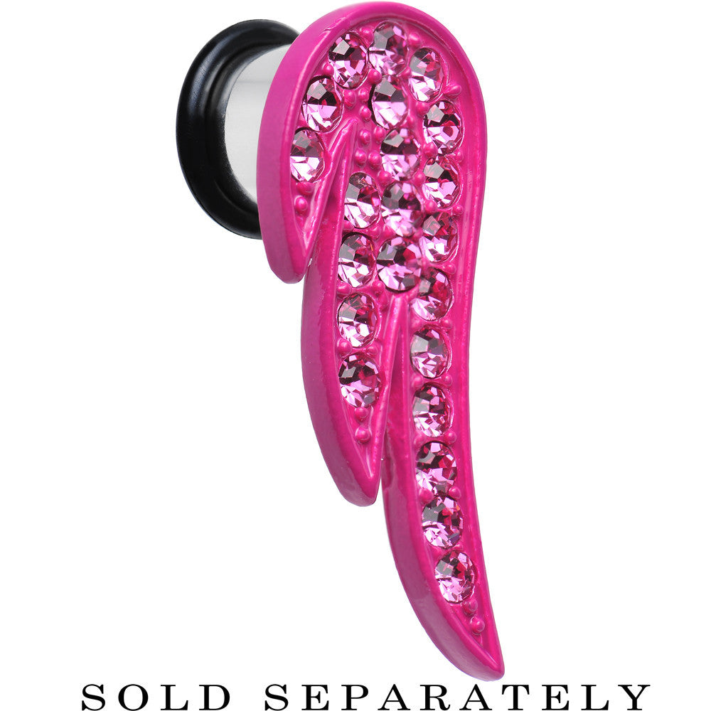 Item sold individually, purchase two for a pair. Never leave your guardian angel far behind with this 10mm pink enamel angel wing stainless steel plug. The heavenly single flare ear stretcher features a solitary bright pink wing studded with twinkling pink gems. Pierced ear expander ear gauge tunnel plug includes one rubber O-ring.
