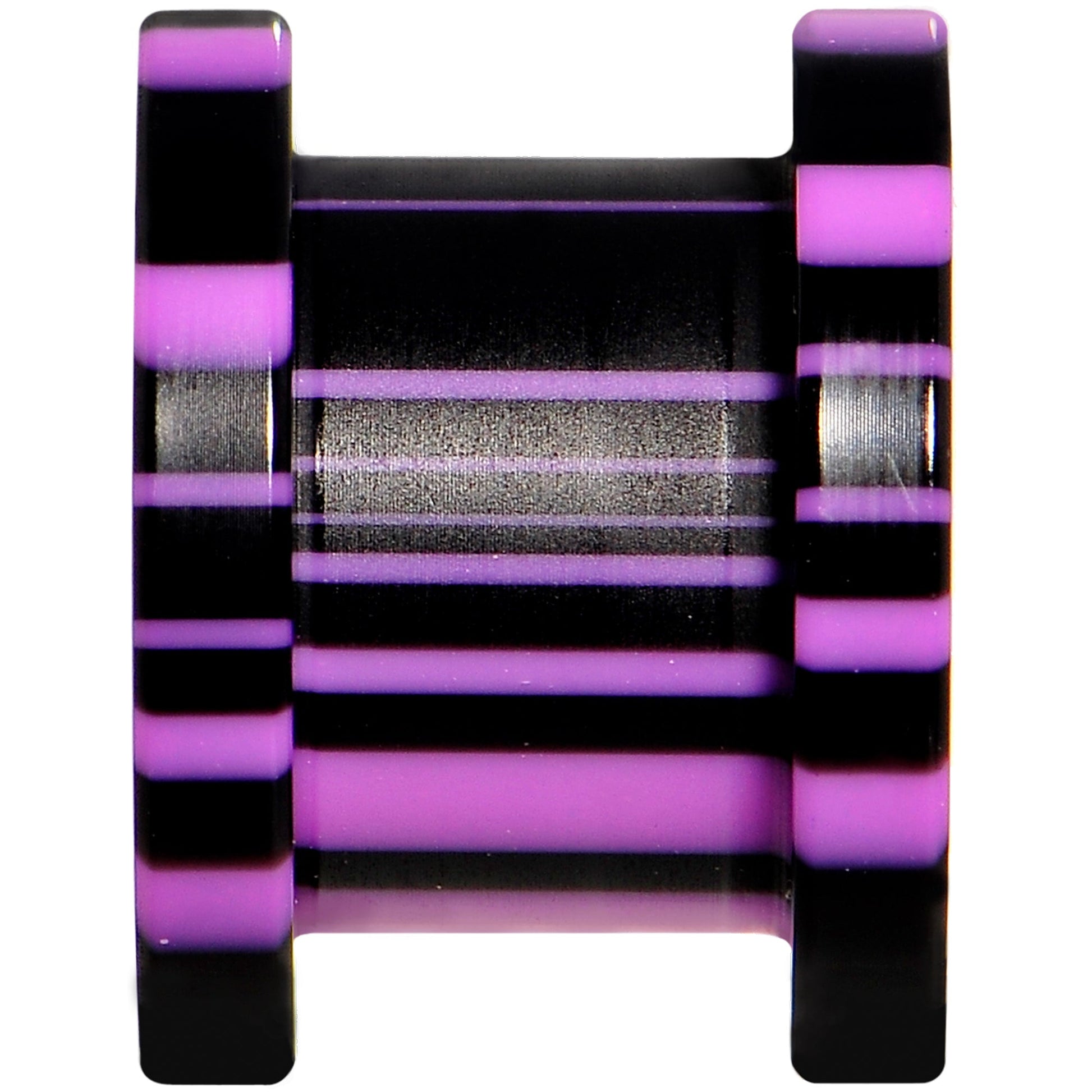00G Purple Black Acrylic Zebra Striped Screw Fit Tunnel Plug Set