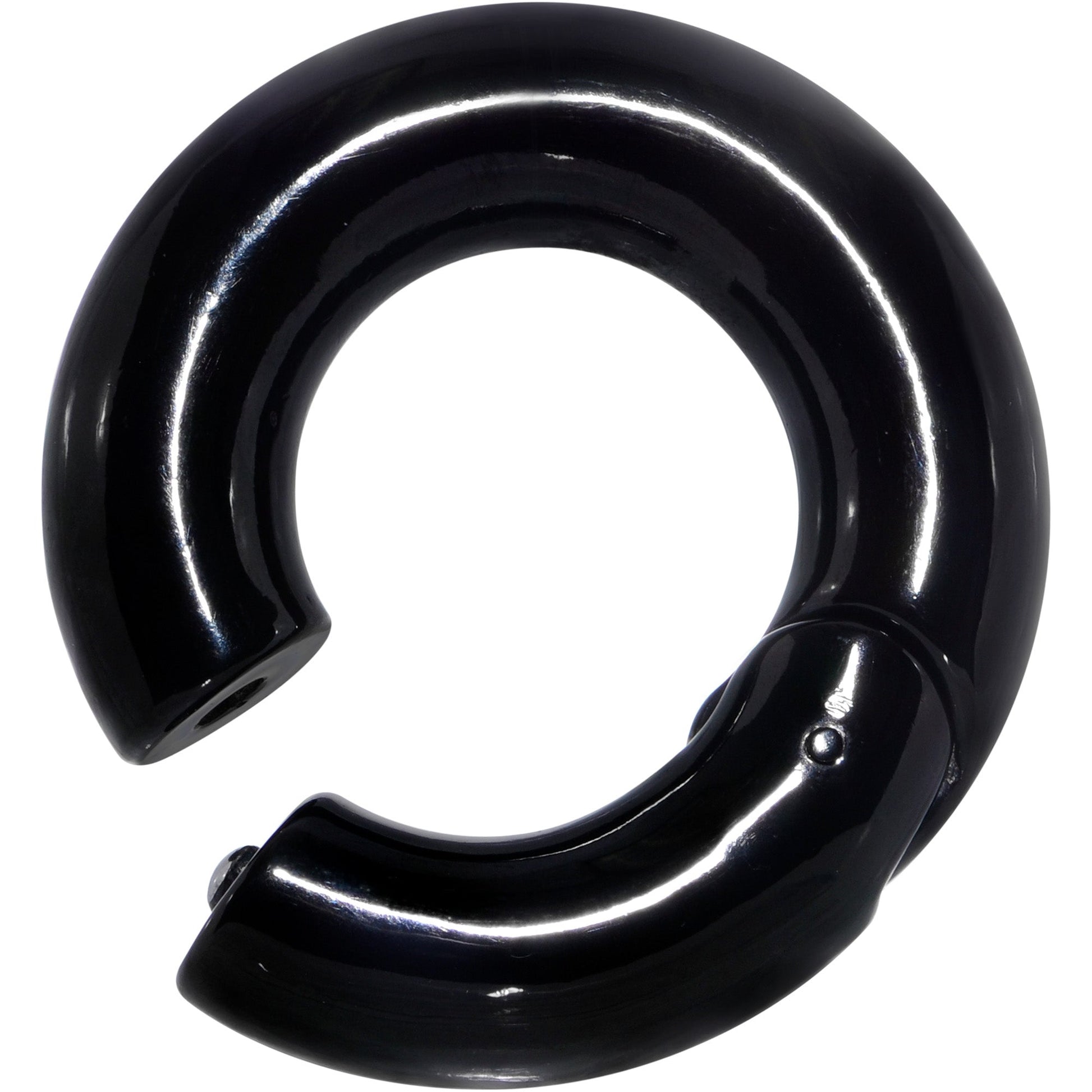 Look no further if you seek body jewelry for your larger gauge piercings because this 0 gauge body piercing ring is perfect! It's made with a 16mm black PVD over 316L surgical grade stainless steel circular ring that features a hinged, non-removable segment which makes it super easy to insert and remove. Your larger gauge or stretched piercing is nothing to worry about with the classic style of this universal body piercing ring!Specifications
