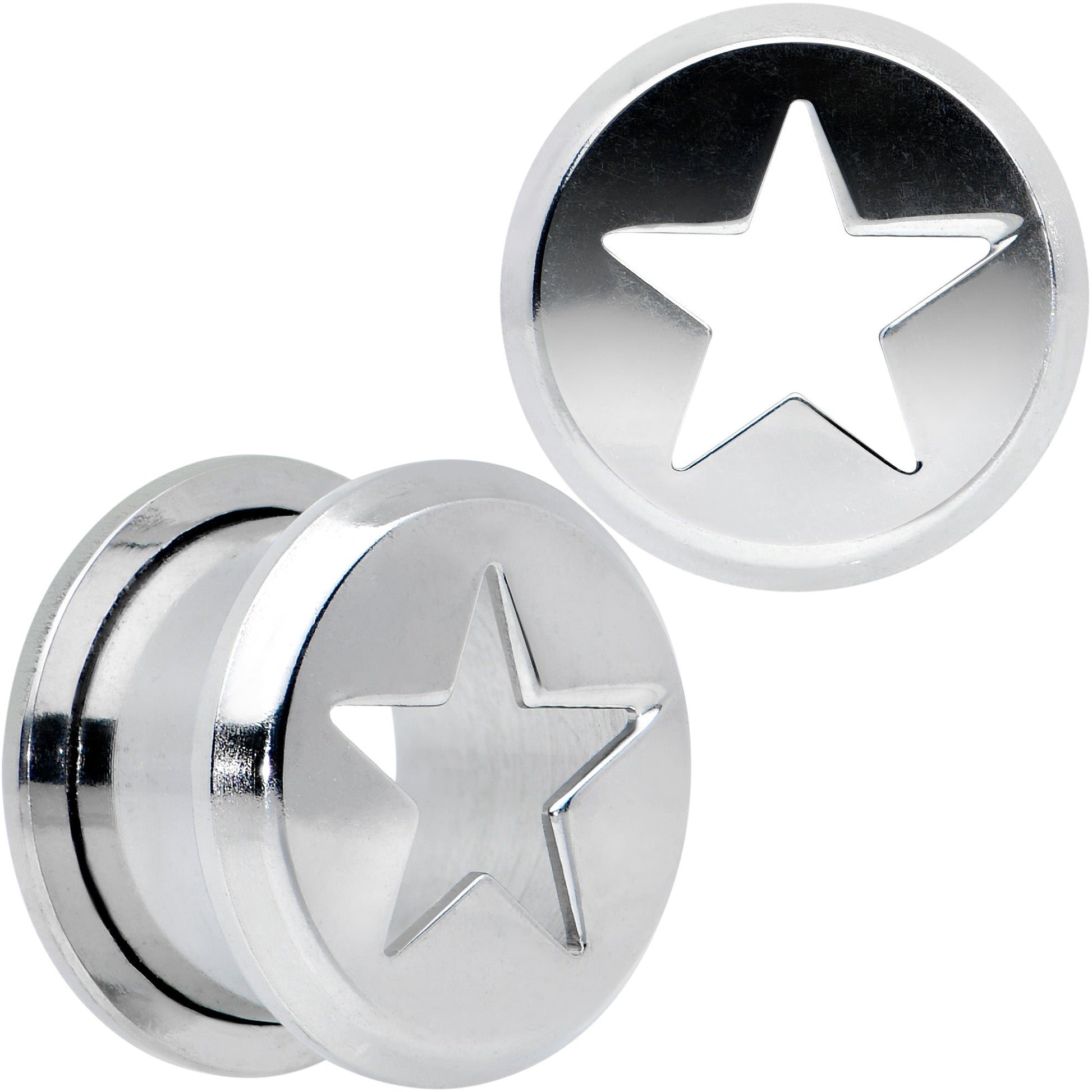 Have your piercings seeing stars with these 12mm plugs for your stretched lobes. They're made with 316L surgical grade stainless steel and feature a screw fit design for easy insertion and secure wear. They also feature a star-shaped tunnel design that's both stylish and whimsical and sure to catch attention. You'll be a star for sure when you're rocking these star tunnel plugs! Sold as a set of two.Specifications