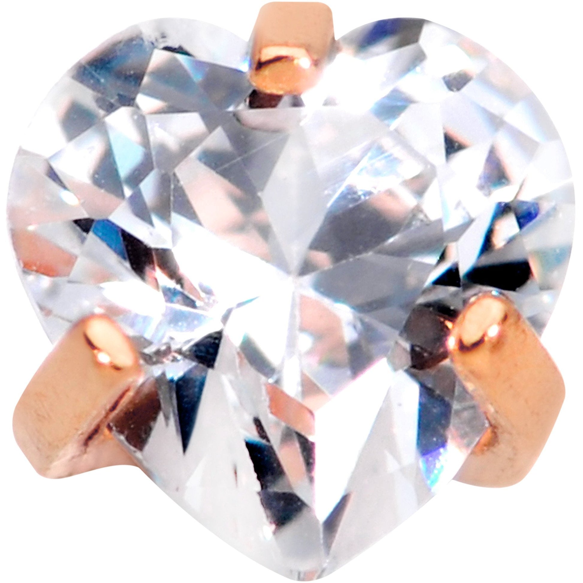 If you love simple yet stylish labret jewelry, then you will love this 16 gauge flat back barbell. Made with a 6mm rose gold PVD over 316L surgical grade stainless steel straight post, this labret piercing features an internally threaded 2mm clear cubic zirconia, heart-shaped gem end. Features a flat back that is perfect for a labret piercing, monroe piercing, or even a cartilage piercing.Specifications