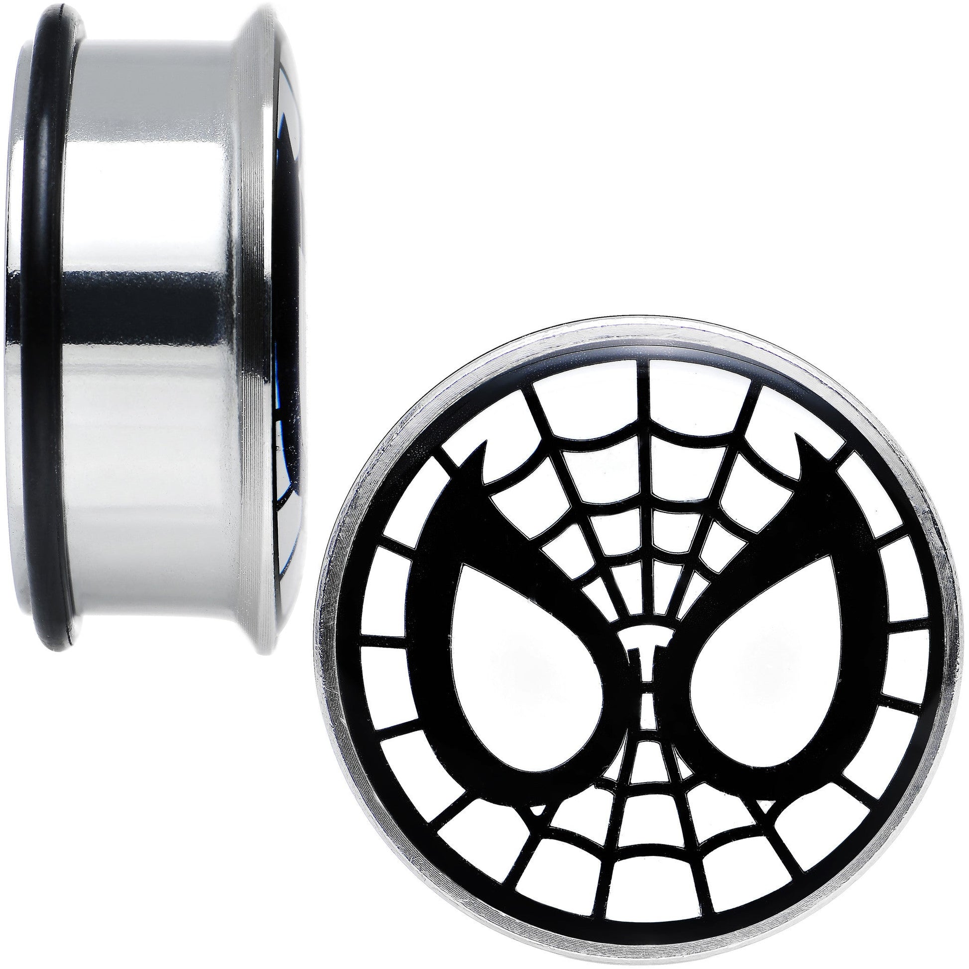25mm stainless steel ear stretcher plugs. Your spider sense will tingle with Marvel Spider-Man logo ear expander plug Body Jewelry.These single flare superhero tunnel plugs are sold as a pair of two (2) and include rubber O-rings. Spider-Man is from Marv
