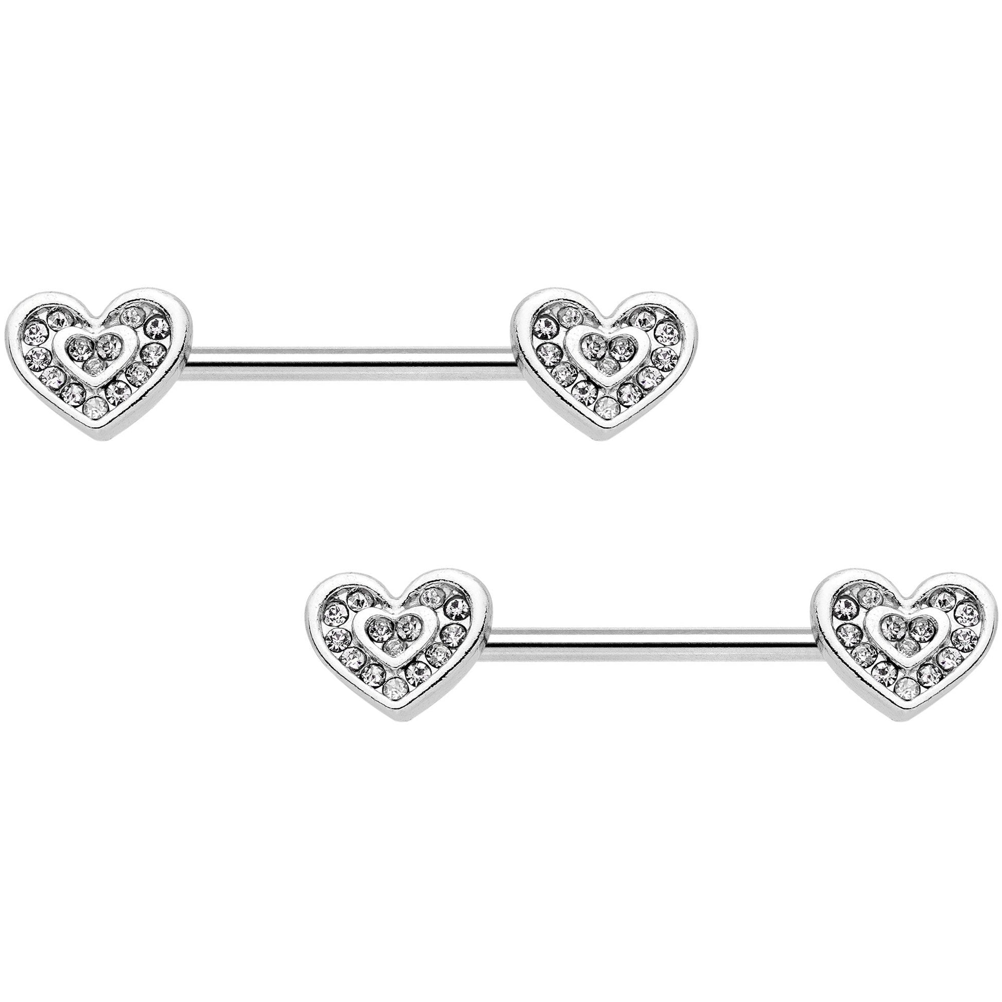 14G 5/8 Clear Gem Wrapped Hearts Barbell Nipple Ring Set