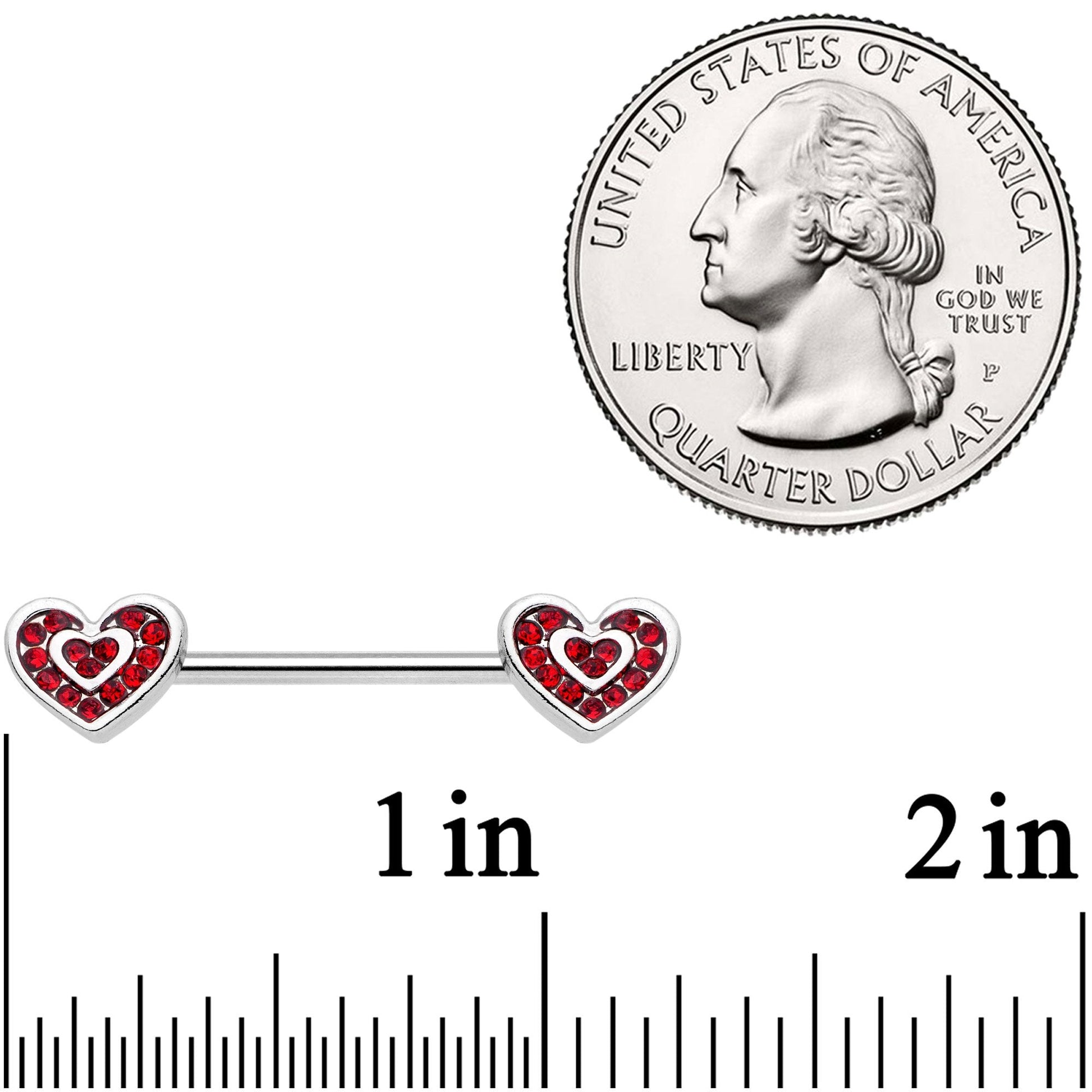 14G 5/8 Red Gem Wrapped Hearts Barbell Nipple Ring Set