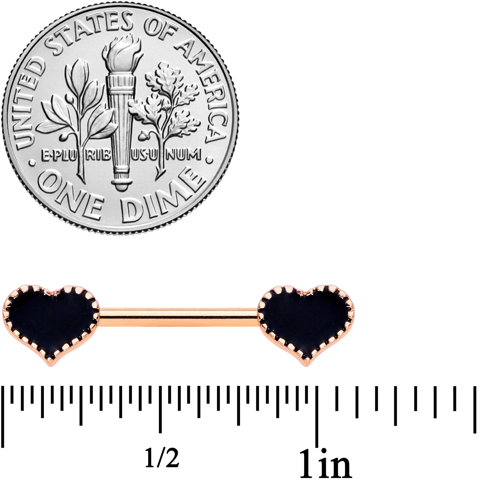 14G 9/16 Rose Gold Tone Black Heart Barbell Nipple Ring Set