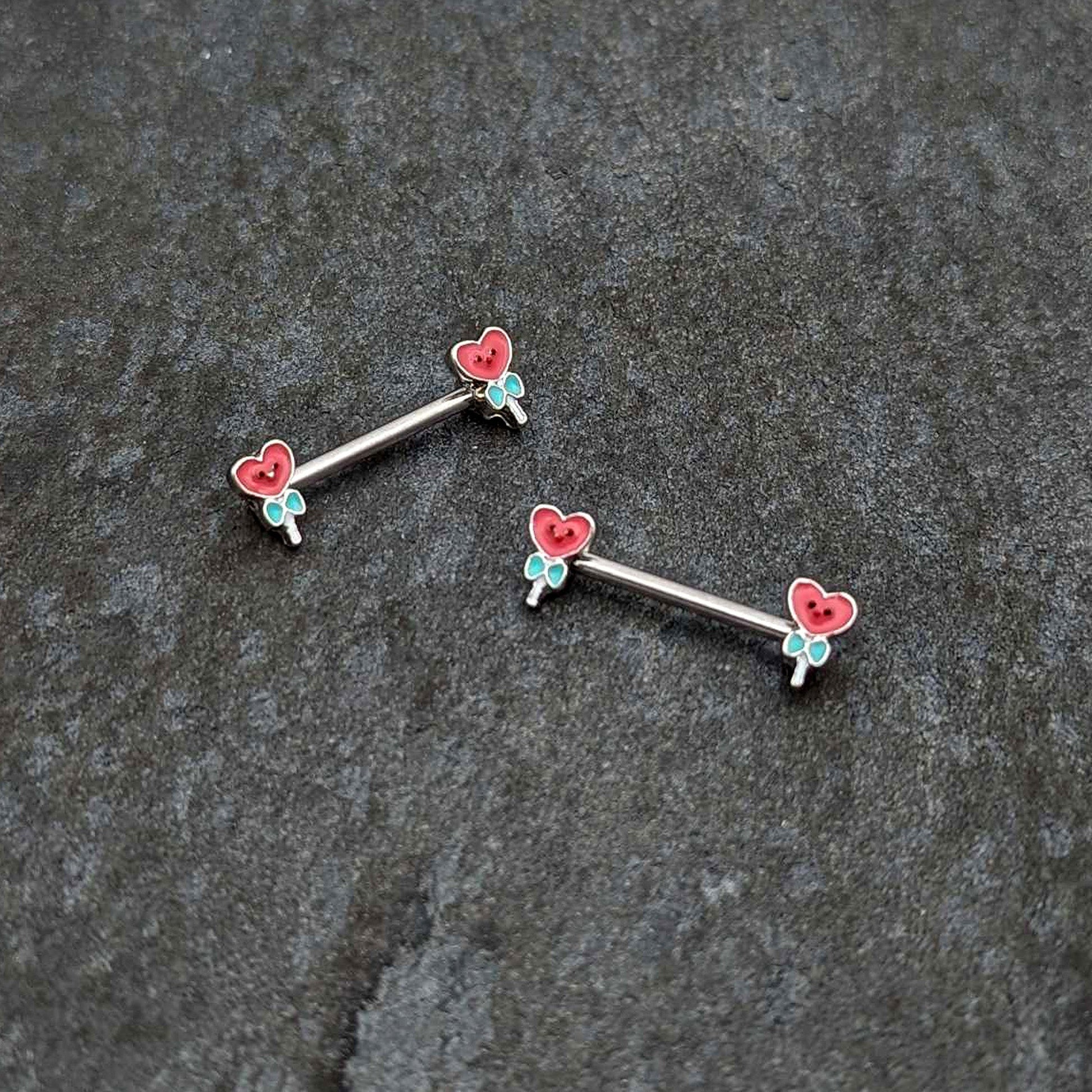 14G 9/16 Sweet Happy Heart Lollipop Barbell Nipple Ring Set