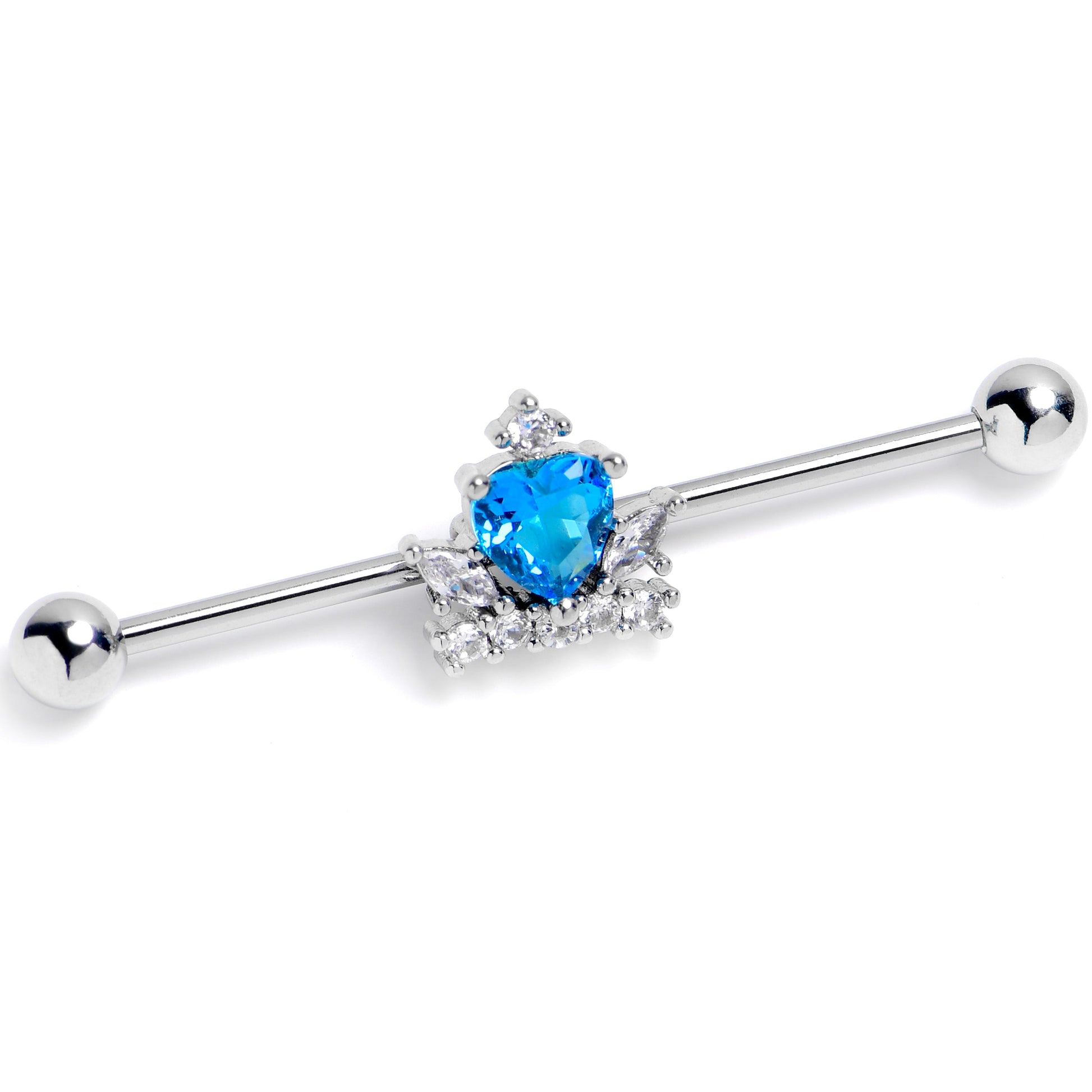 14G Blue Clear Gem Heart Crown Industrial Barbell 38mm