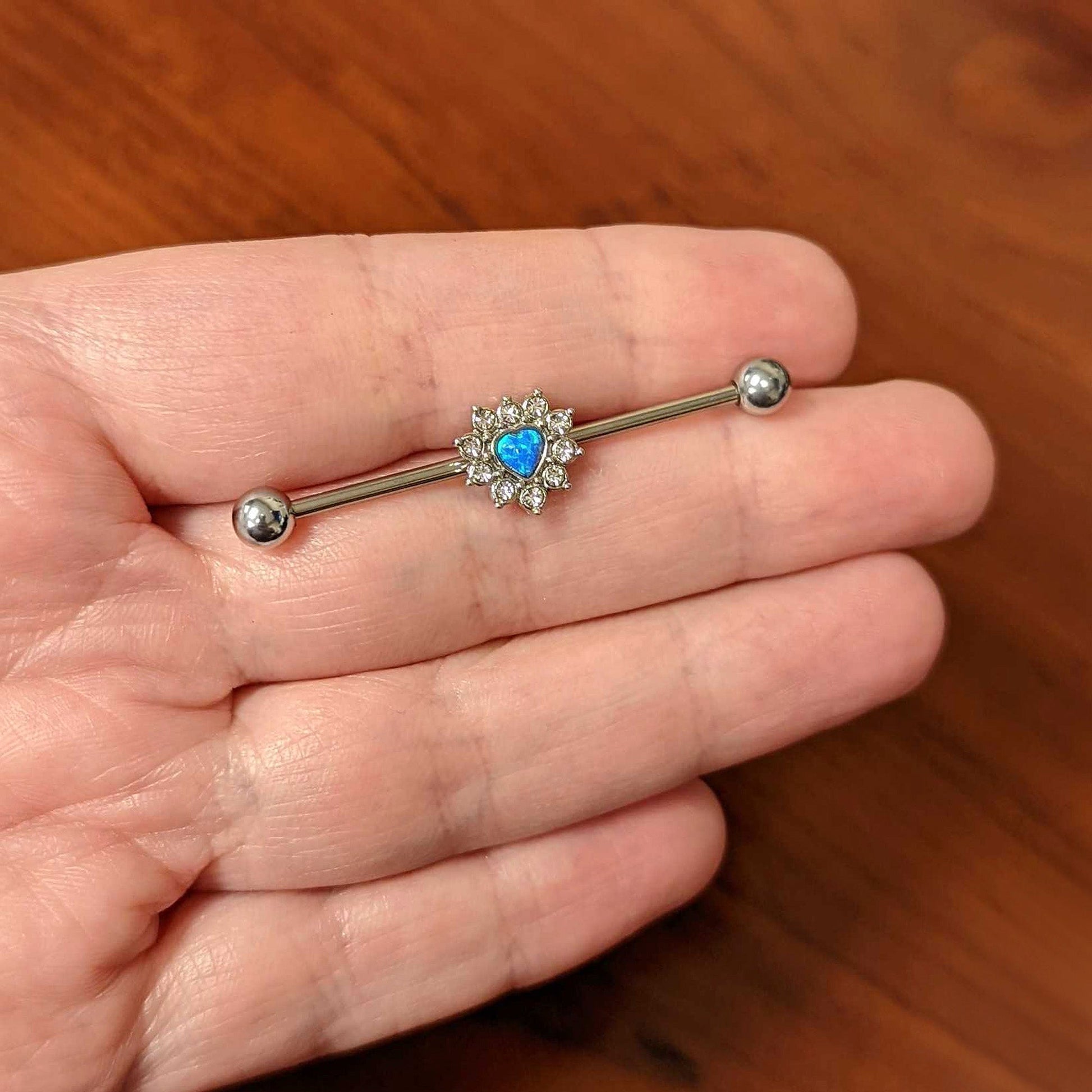 14 Gauge Blue Synthetic Opal Sun Heart Industrial Barbell 38mm