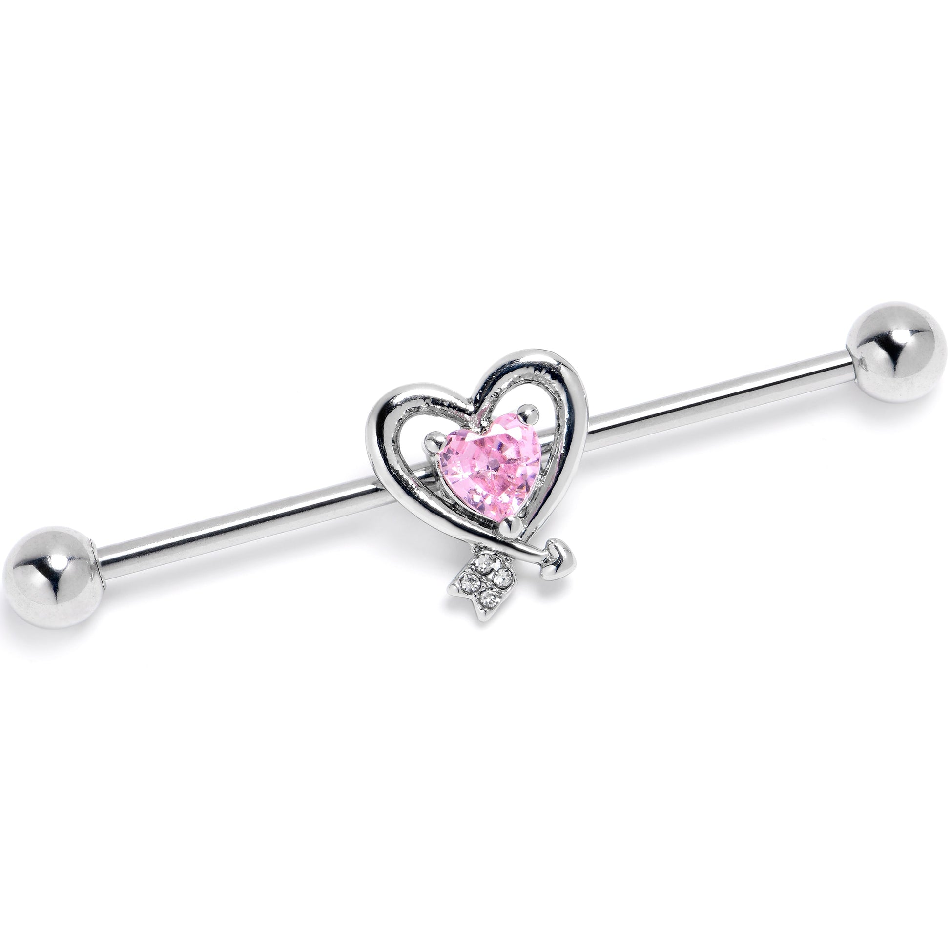 14 Gauge Pink CZ Gem Wrapped in Heart Industrial Barbell 38mm