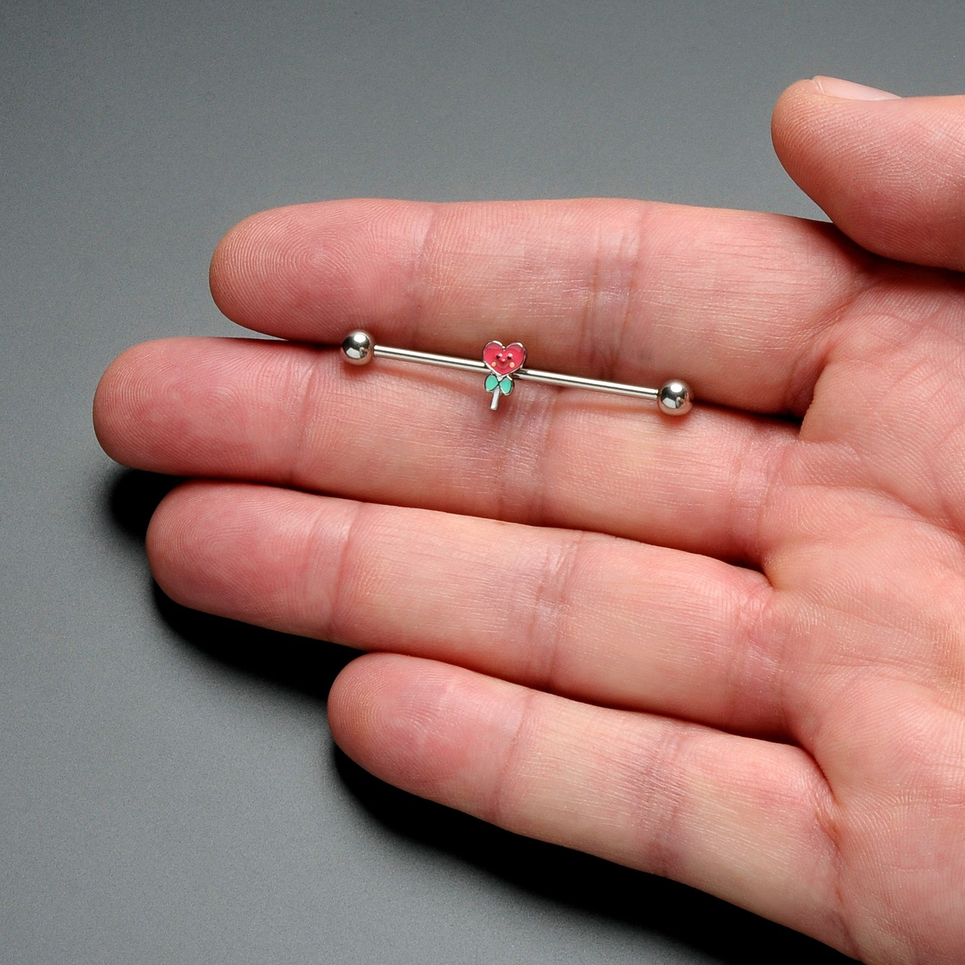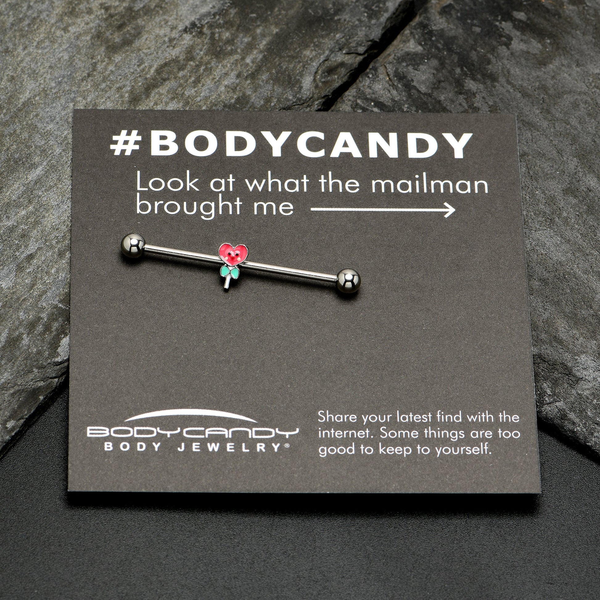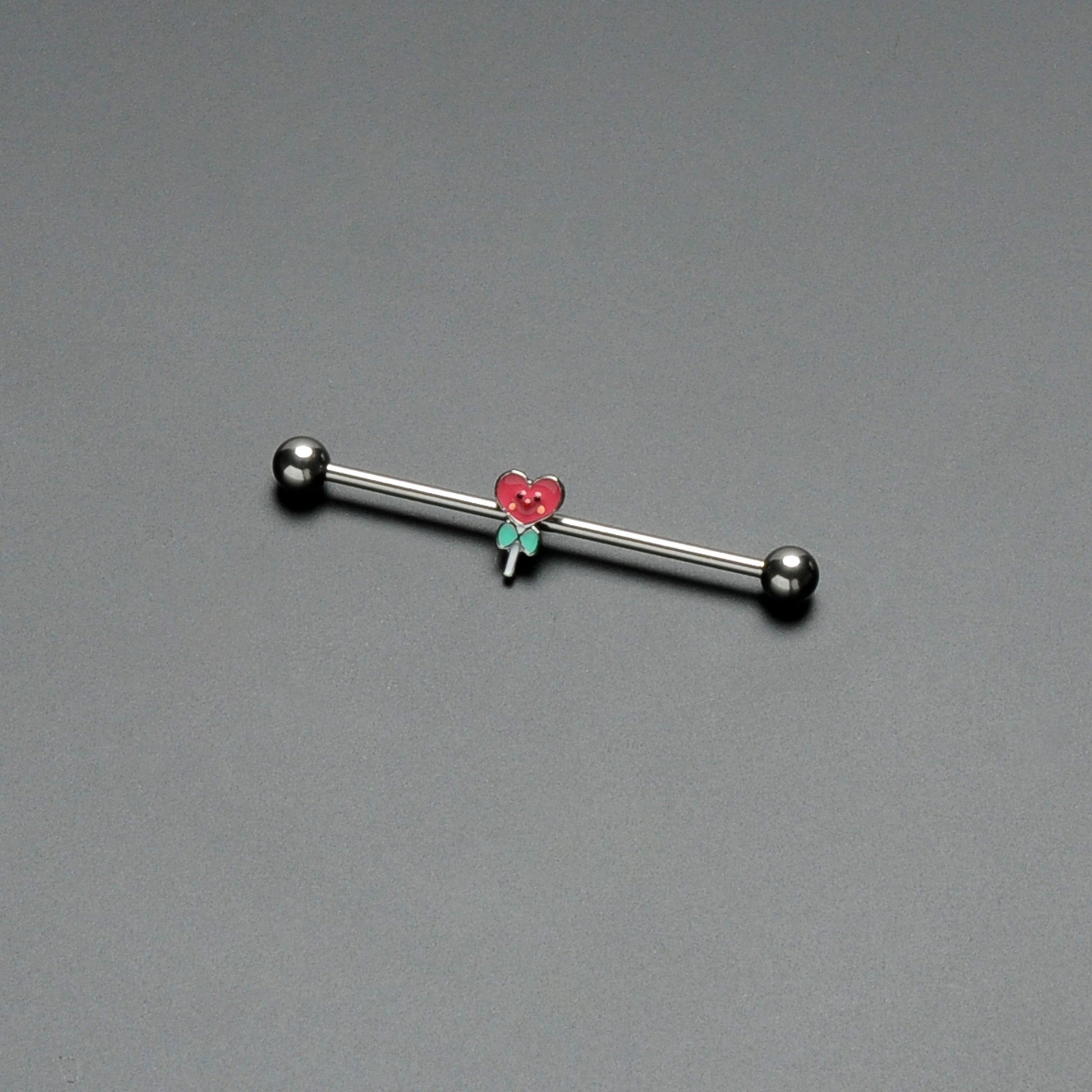 14 Gauge Sweet Happy Heart Lollipop Industrial Barbell 38mm
