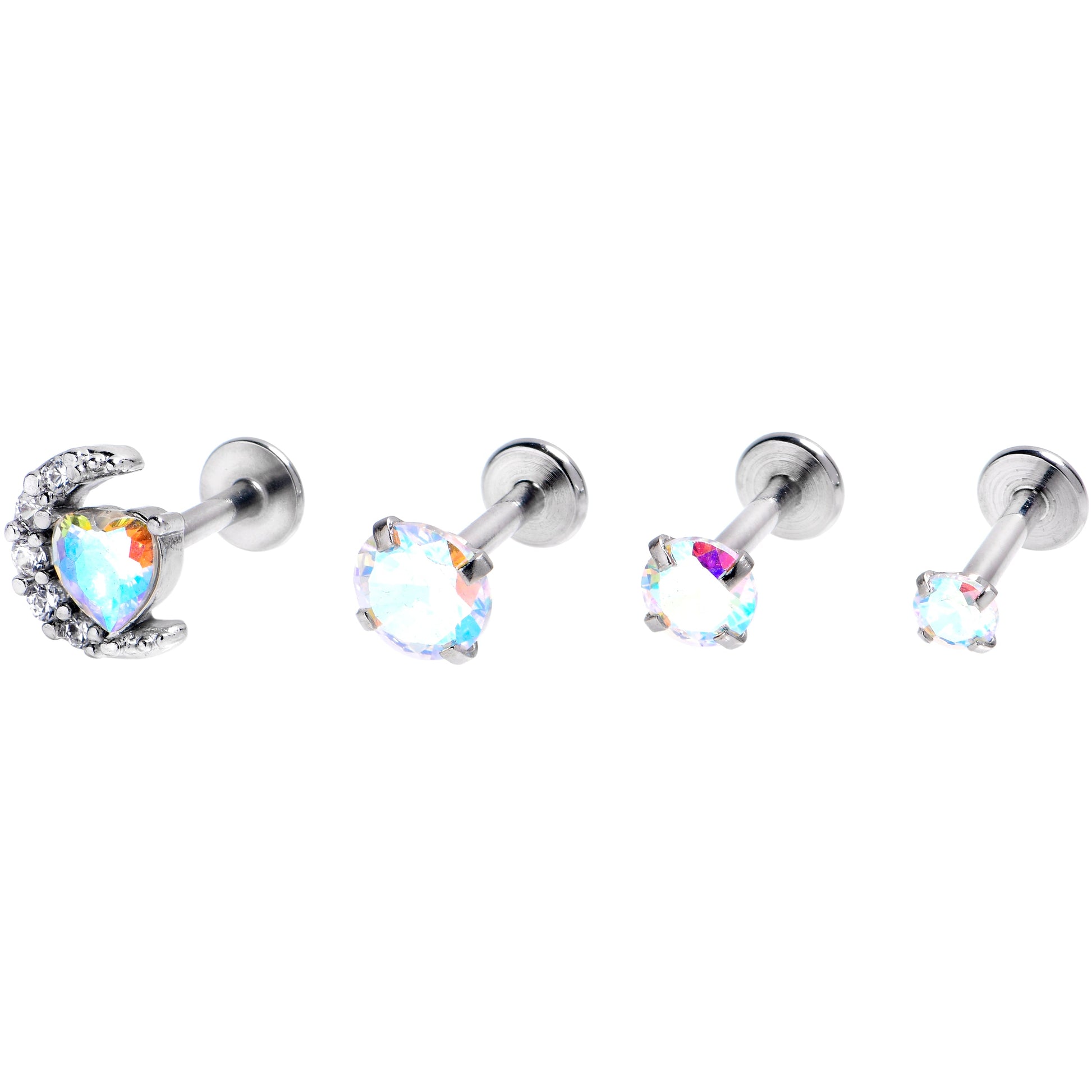 16G 1/4 Aurora Gem Moon Heart Labret Set of 4