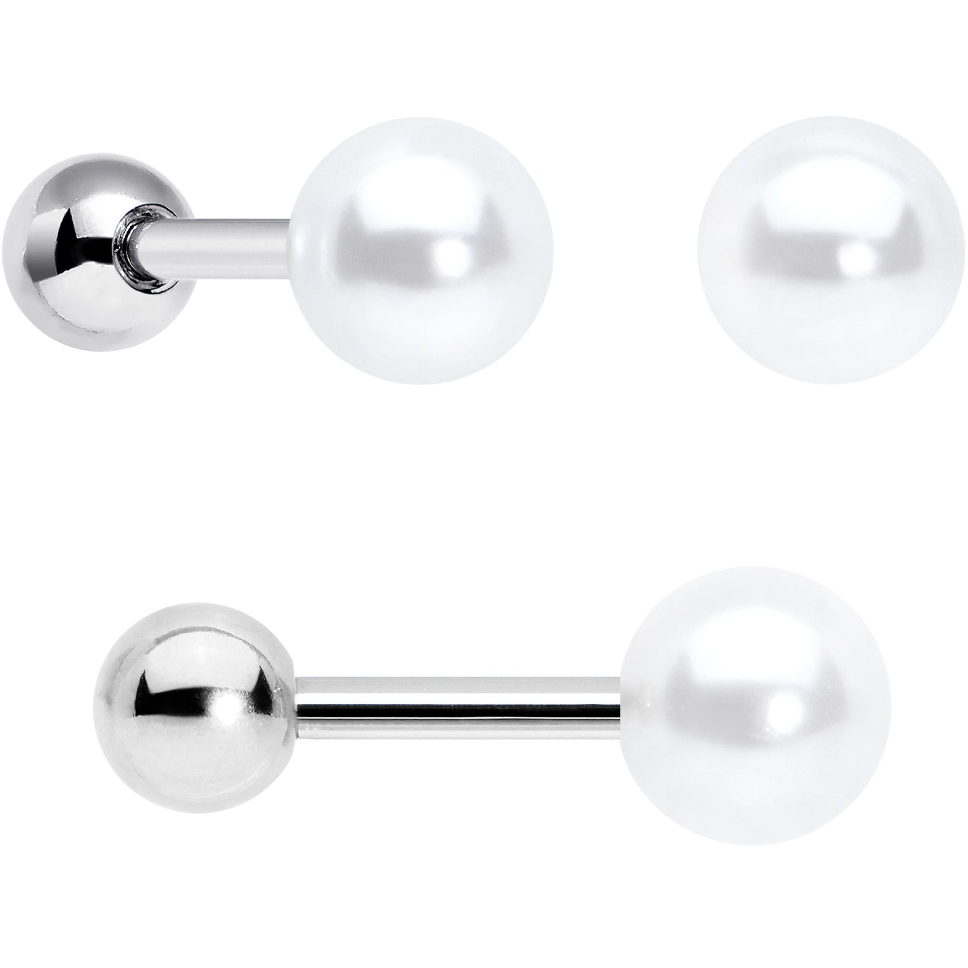 This set of 16 gauge tragus studs is almost un-bear-ably adorable! They're made with 6mm durable 316L surgical grade stainless steel straight barbells with 4mm ball ends. The first one features a sweet little teddy bear charm with a purple pearlescent finish. The second features a white pearlescent ball end for an elegant and timeless appearance. The third one features a heart charm inlaid in purple with glitter embellishment. You can even wear these cartilage studs in multiple piercings including tragus, helix, and some conch piercings. You'll definitely fall in love with this cartilage jewelry! Sold as a set of three.Specifications