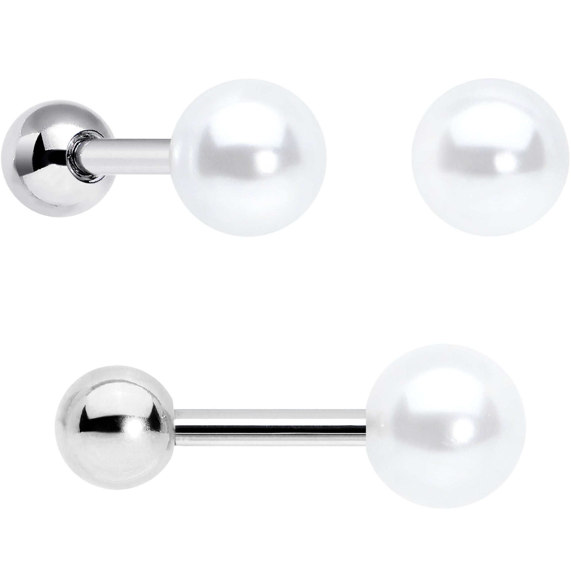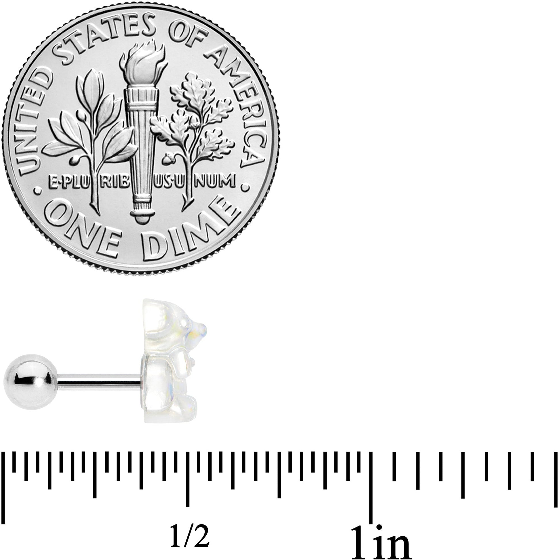 This set of 16 gauge tragus studs is almost un-bear-ably adorable! They're made with 6mm durable 316L surgical grade stainless steel straight barbells with 4mm ball ends. The first one features a sweet little teddy bear charm with a pearlescent finish. The second features a white pearlescent ball end for an elegant and timeless appearance. The third one features a heart charm with one half inlaid in white and the other half inlaid in red. You can even wear these cartilage studs in multiple piercings including tragus, helix, and some conch piercings. You'll definitely fall in love with this cartilage jewelry! Sold as a set of three.Specifications