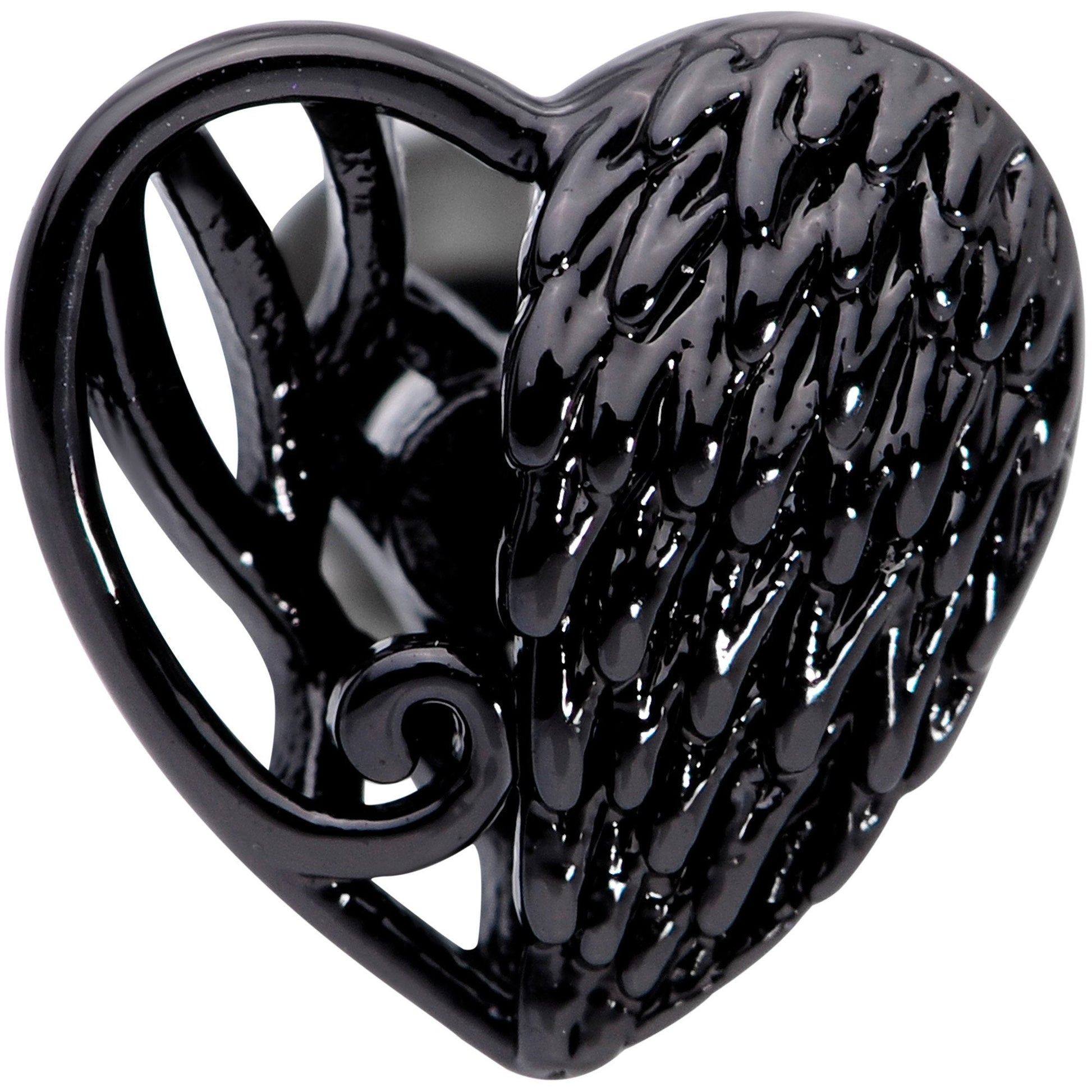 16 Gauge 1/4 Black Angels Wing Heart Tragus Cartilage Earring
