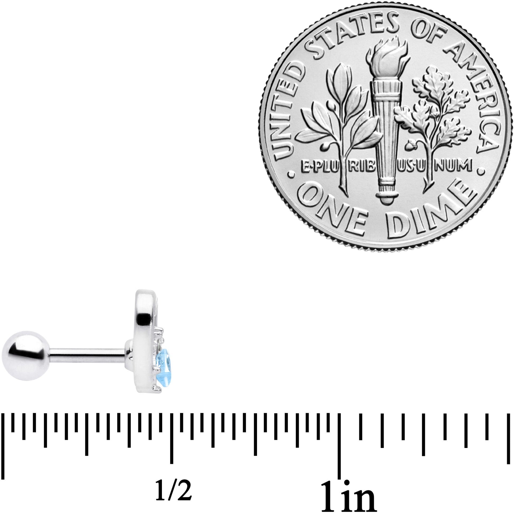 If you're an open-hearted person but don't want to wear your heart on your sleeve.....now you can wear it on your ear with this 16 gauge tragus stud! It's made with a 6mm durable 316L surgical grade stainless steel straight barbell with a 4mm ball end. It features an open-centered heart set with a blue gem and several small clear gems for visual contrast. This cartilage earring works well in multiple piercings including the helix and tragus. So pop it in your cartilage piercing and let the whole world see what an open-hearted soul you are!Specifications