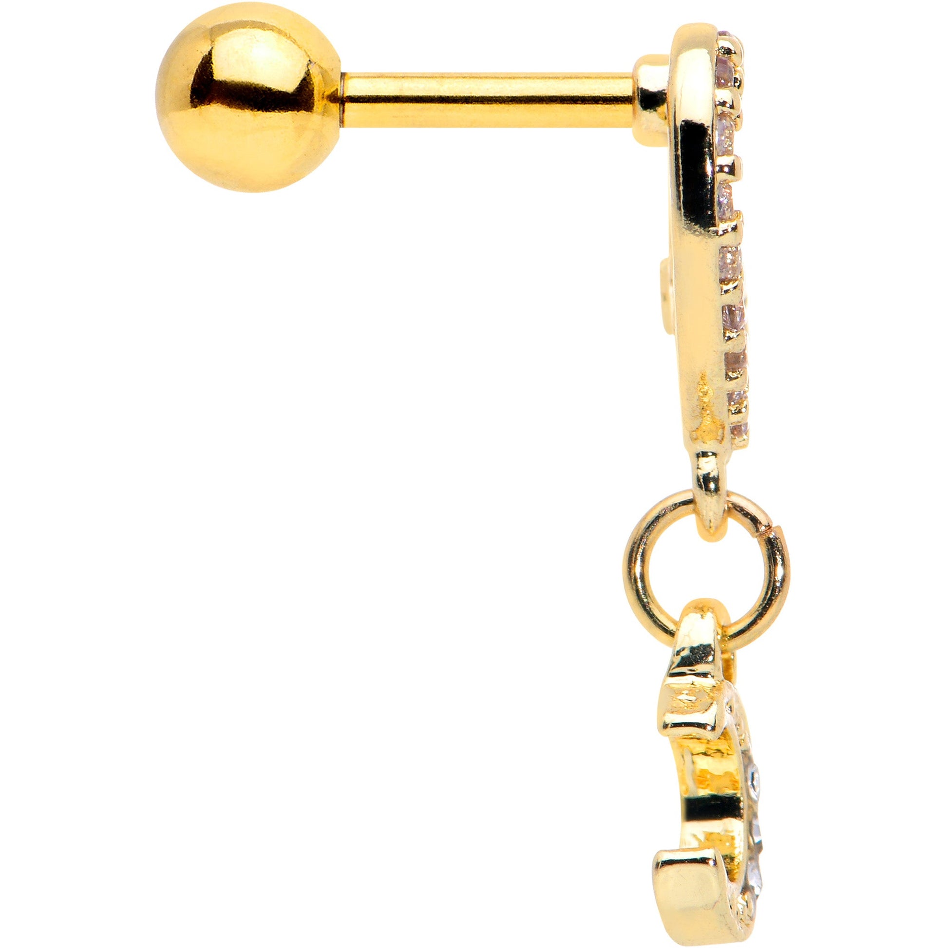 16G 1/4 Clear CZ Gem Gold Tone Heart Moon Dangle Cartilage Earring