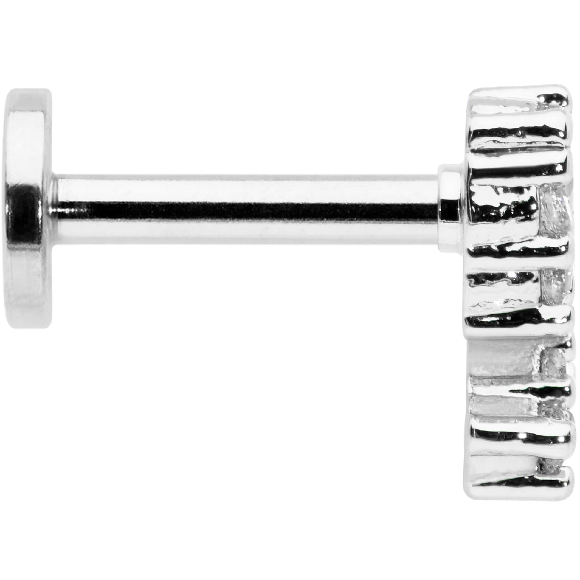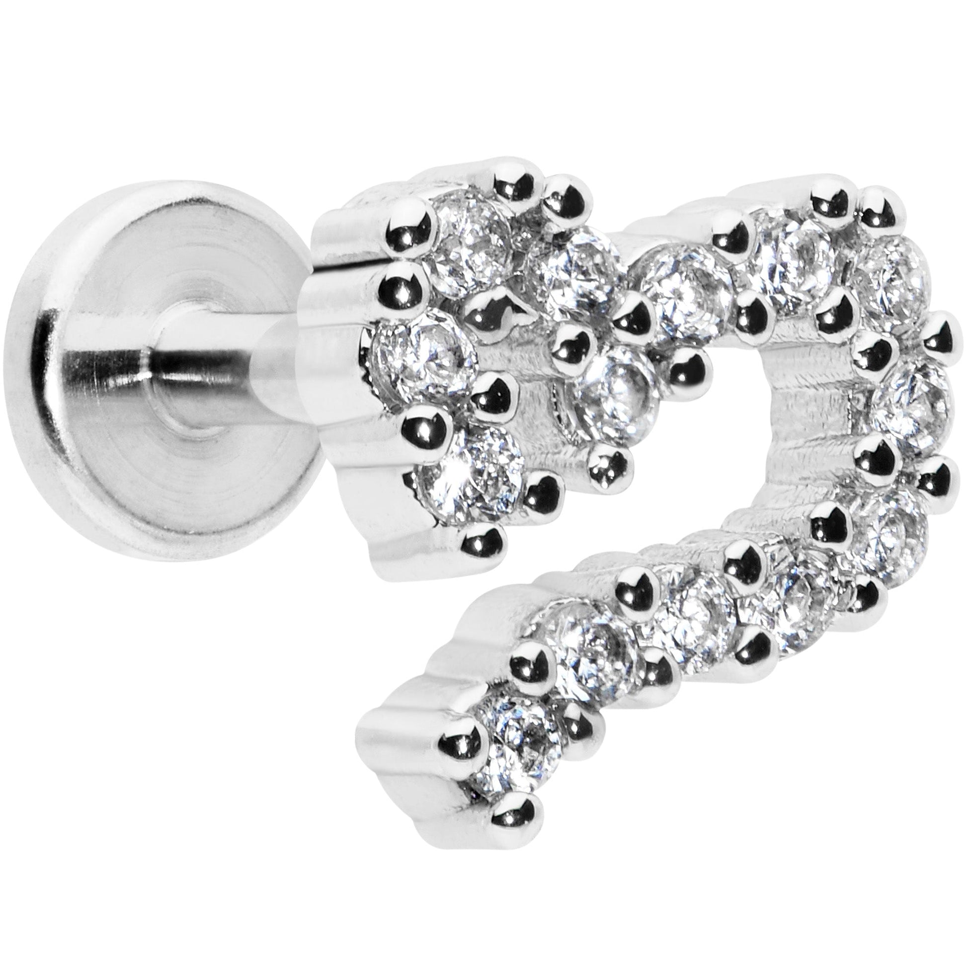 16 Gauge 1/4 Clear CZ Gem Half Heart Internally Threaded Labret Tragus