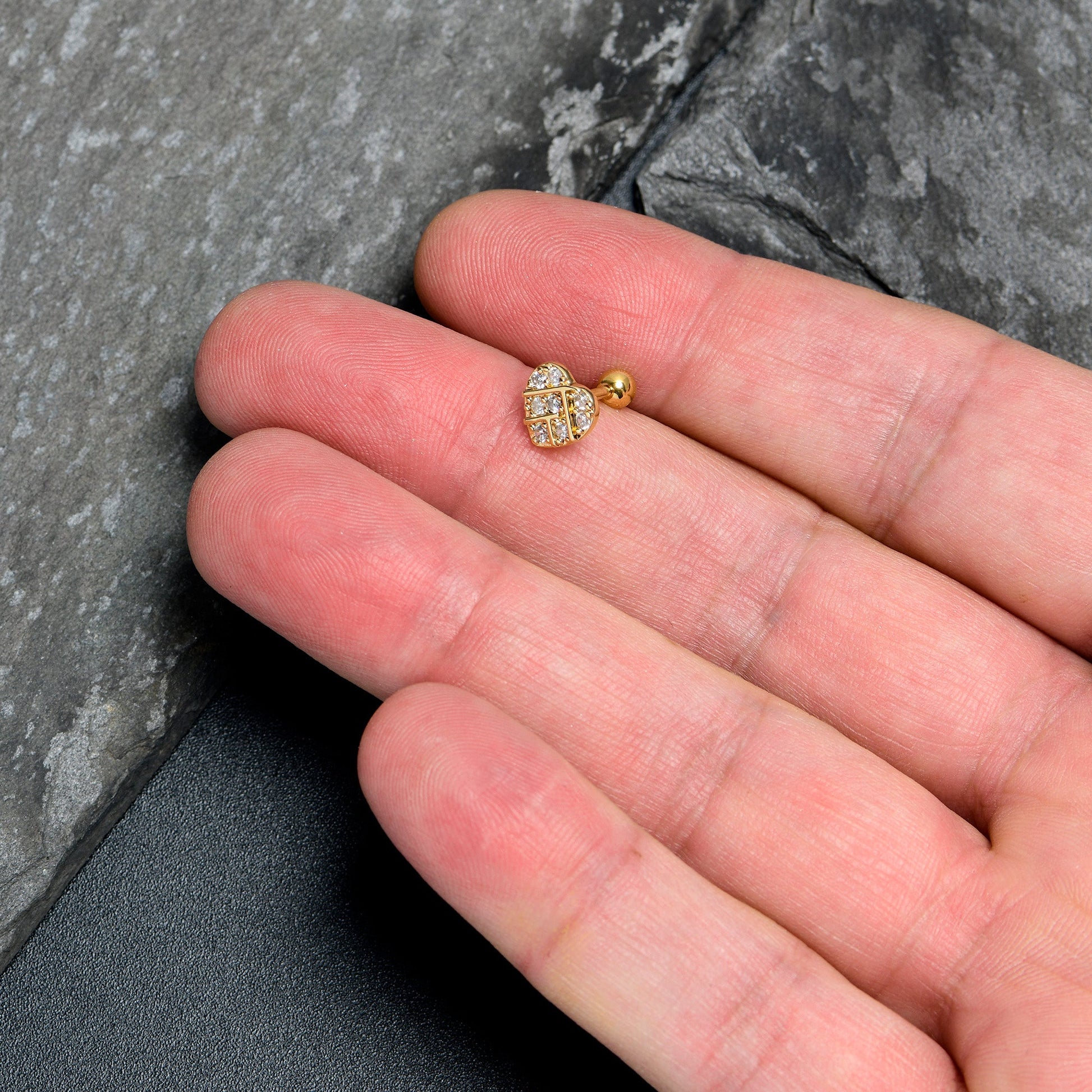 16 Gauge 1/4 Clear Gem Gold Tone Lattice Heart Cartilage Tragus Earring
