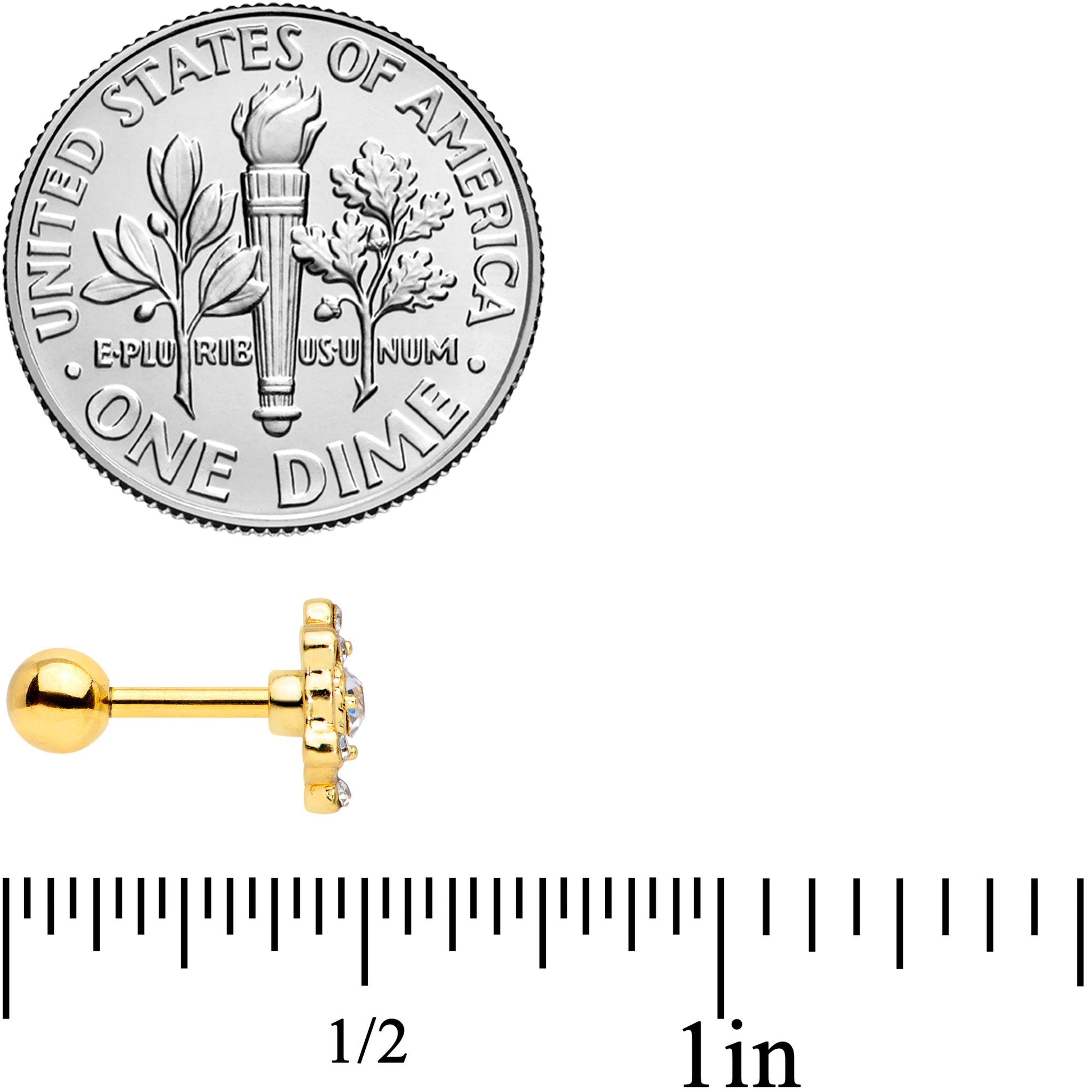 16 Gauge 1/4 Clear Gem Gold Tone Open Heart Cartilage Tragus Earring