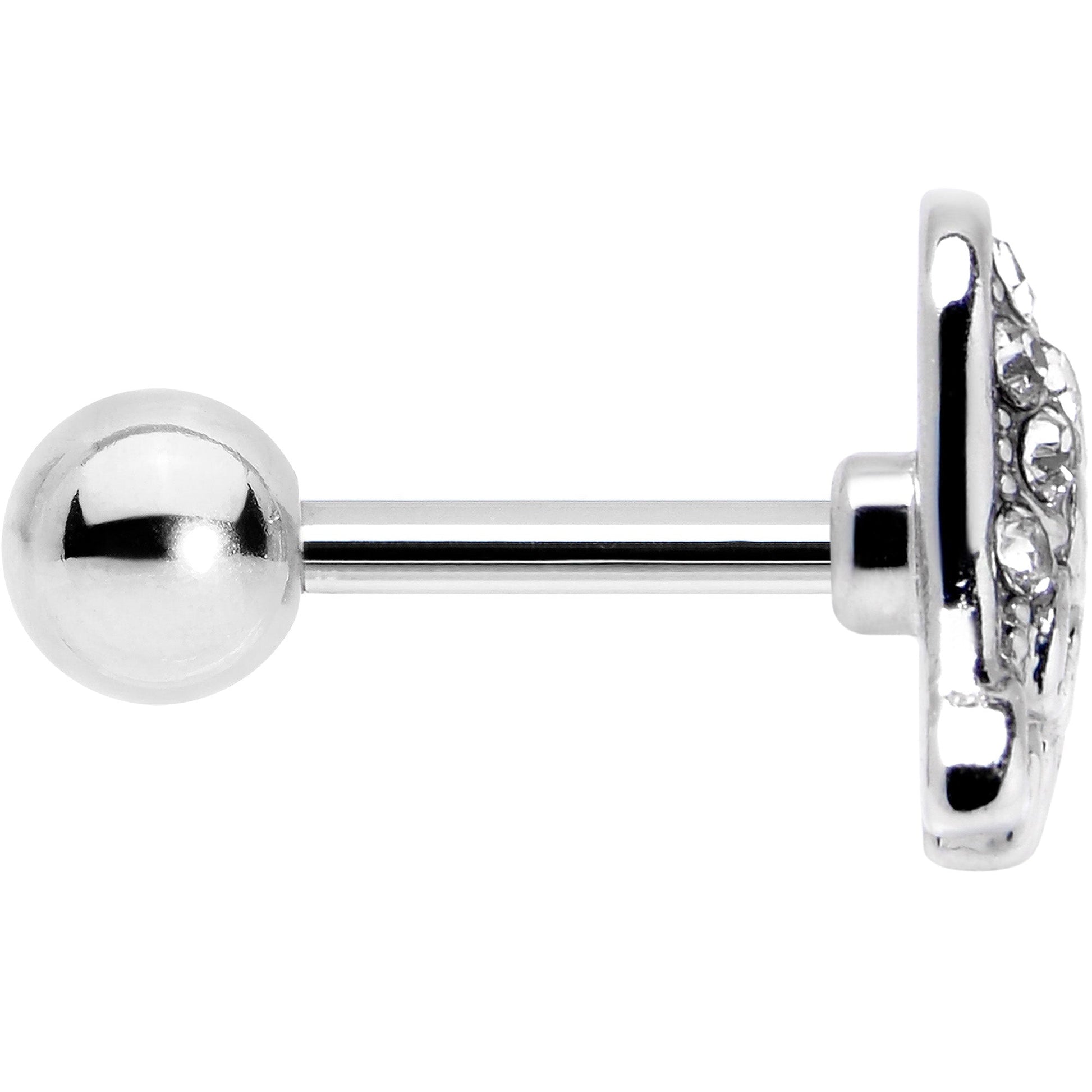 Give yourself a heavenly new look with this 16 gauge tragus stud. It's made with a 6mm durable 316L surgical grade stainless steel straight barbell with a 4mm ball end. It features a heart shaped charm featuring an angel's wings, with one side paved with clear gems. The other side features pink inlay and simply styled feather details and you can rock it in multiple piercings including tragus, helix, and some conch piercings. Let your look and your spirit soar with this stylish and spiritual cartilage piercing jewelry.Specifications