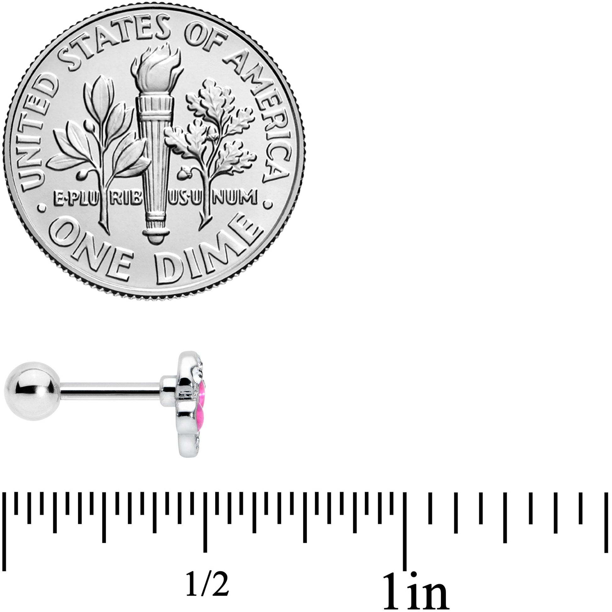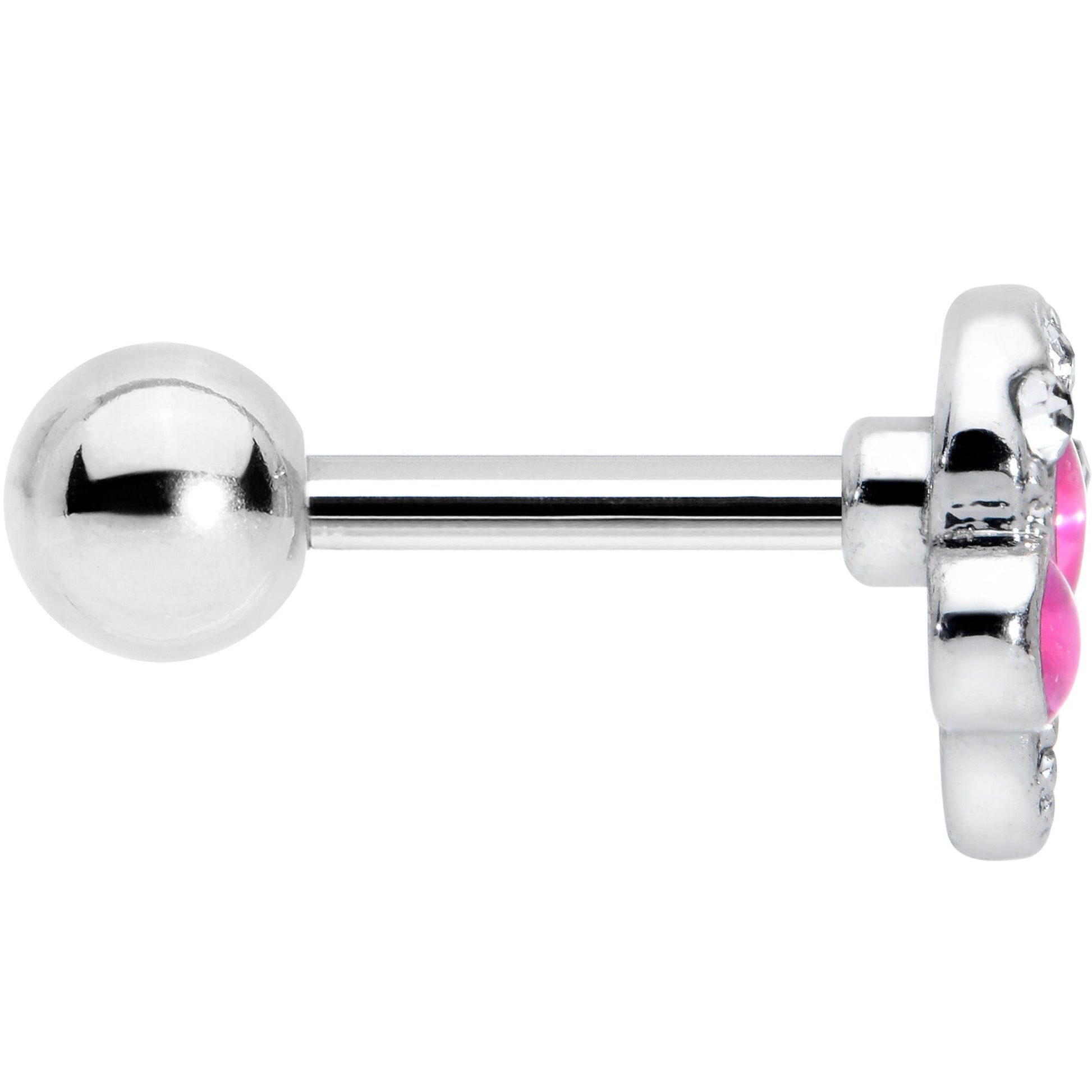 When love throws you a curve, wear it with pride with this 16 gauge tragus stud! It's made with a 6mm durable 316L surgical grade stainless steel curved barbell with a 4mm ball end. It features a heart charm, with the heart composed entirely of two pink gems. Curving around the side of the heart is an elegant swirl, paved with small clear gems for added style. You can even wear this heart in multiple piercings such as tragus, helix, and some conch piercings. Wear your heart with elegant style with this charming Valentine cartilage stud!Specifications