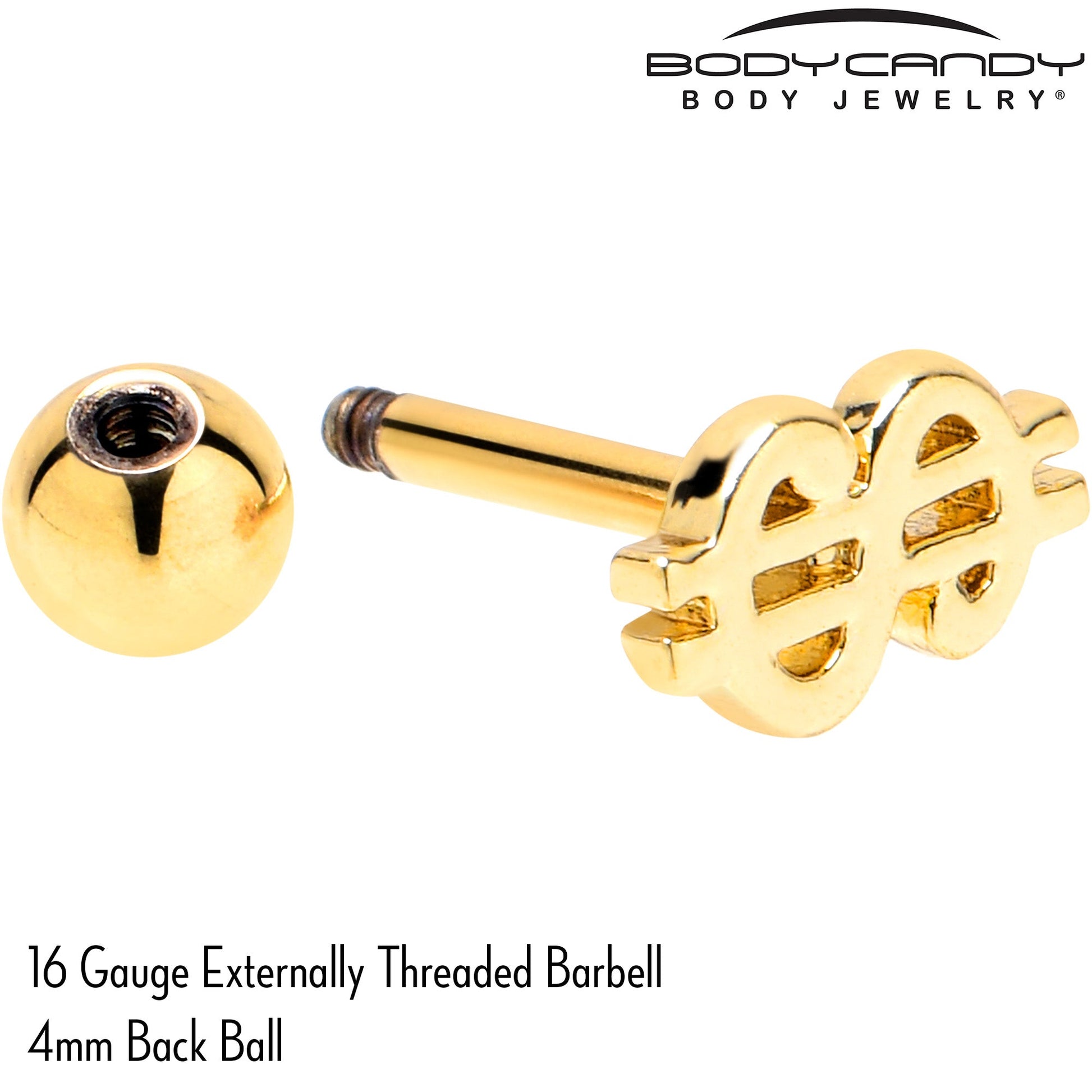 16 Gauge 1/4 Gold Tone Dollar Sign Cartilage Tragus Earring