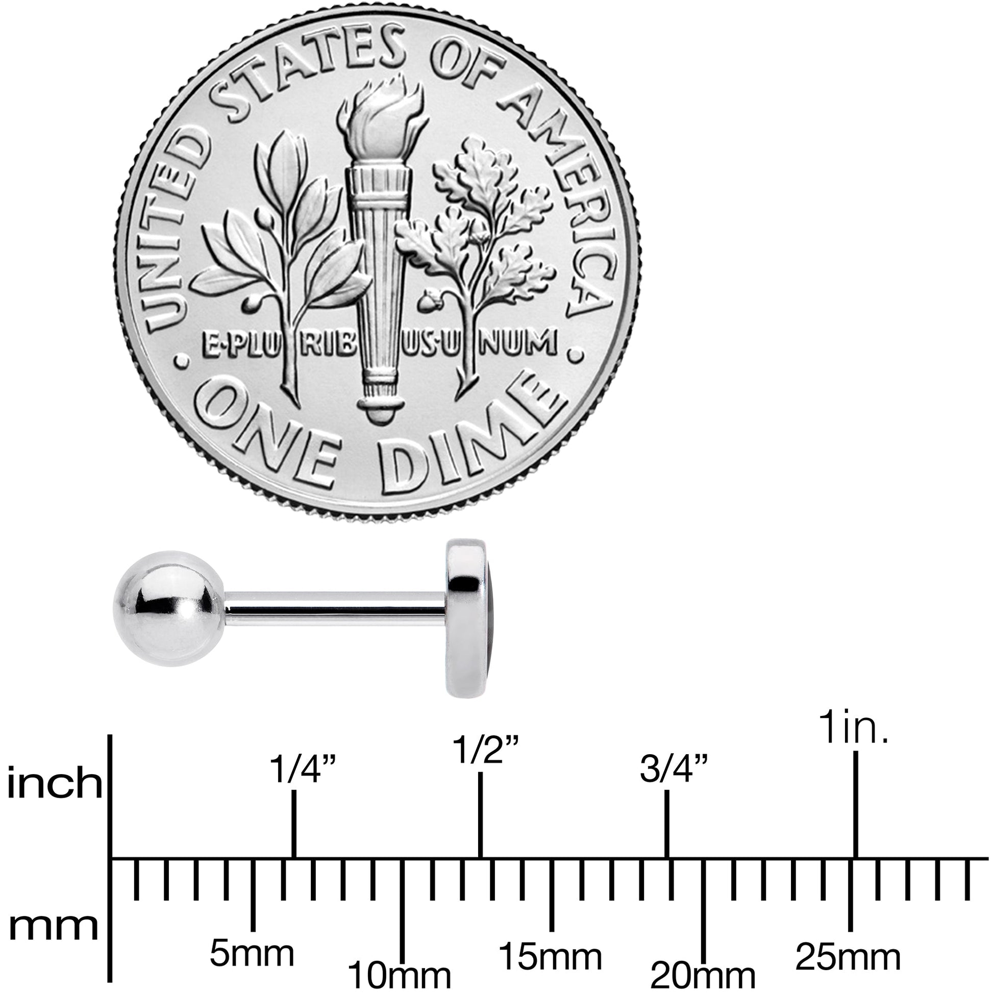 16 Gauge (1.2mm), 1/4" (6mm), 316L Surgical Grade Stainless Steel Straight Barbell, 4mm Ball End