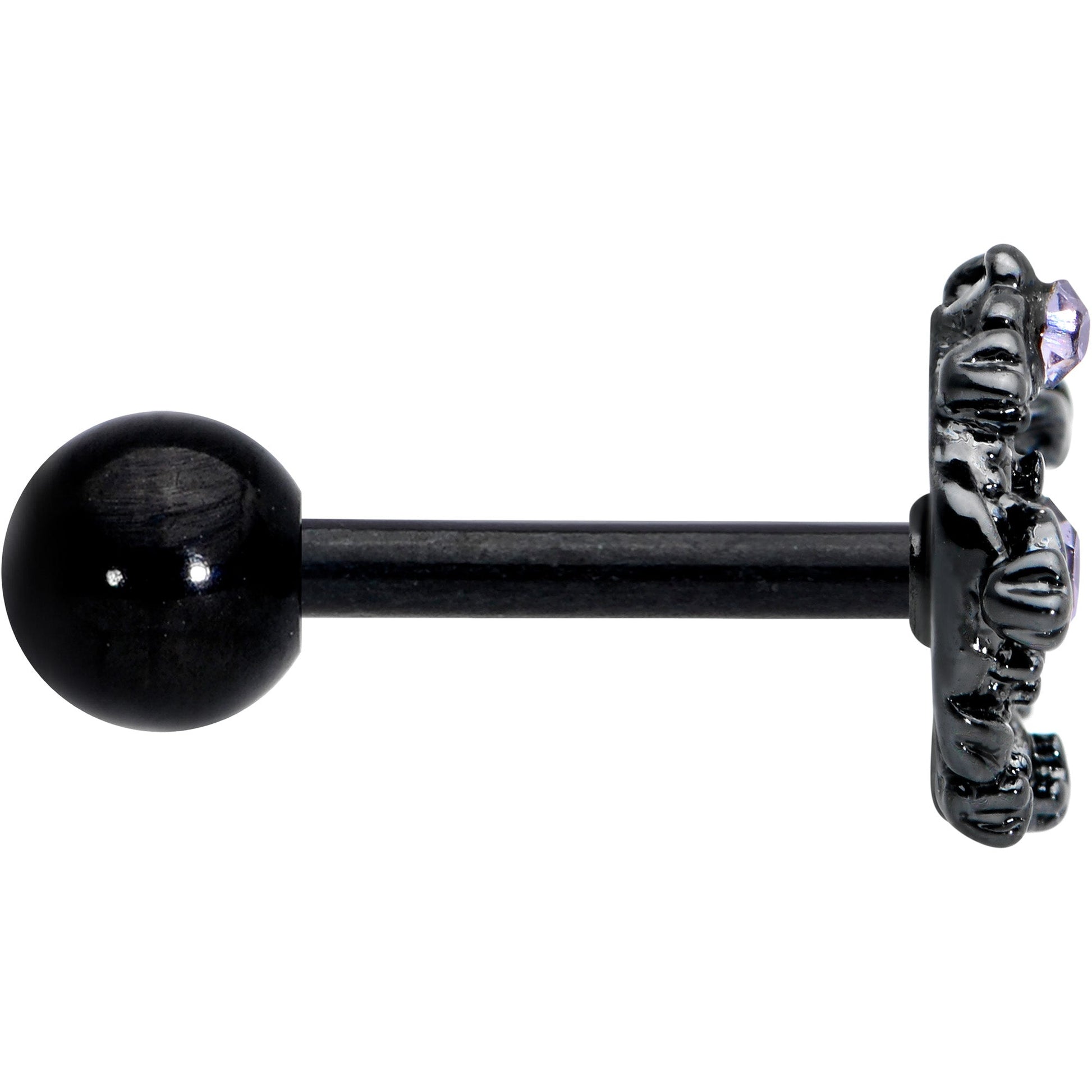 Crown your nose piercing in style with this elegant 16 gauge tragus earring! It's made with a 6mm black PVD over 316L surgical grade stainless steel straight barbell with a 4mm ball end. It features a lacy crown charm, with a heart at the center. At the central point of the crown is a purple gem and there is a flower embellishment at the top of the shield, set with another purple gem. You can even crown multiple piercings including tragus, helix, and some conch piercings! Rock this regal crown and feel like the royalty you are with this elegant, aristocratic cartilage jewelry!Specifications