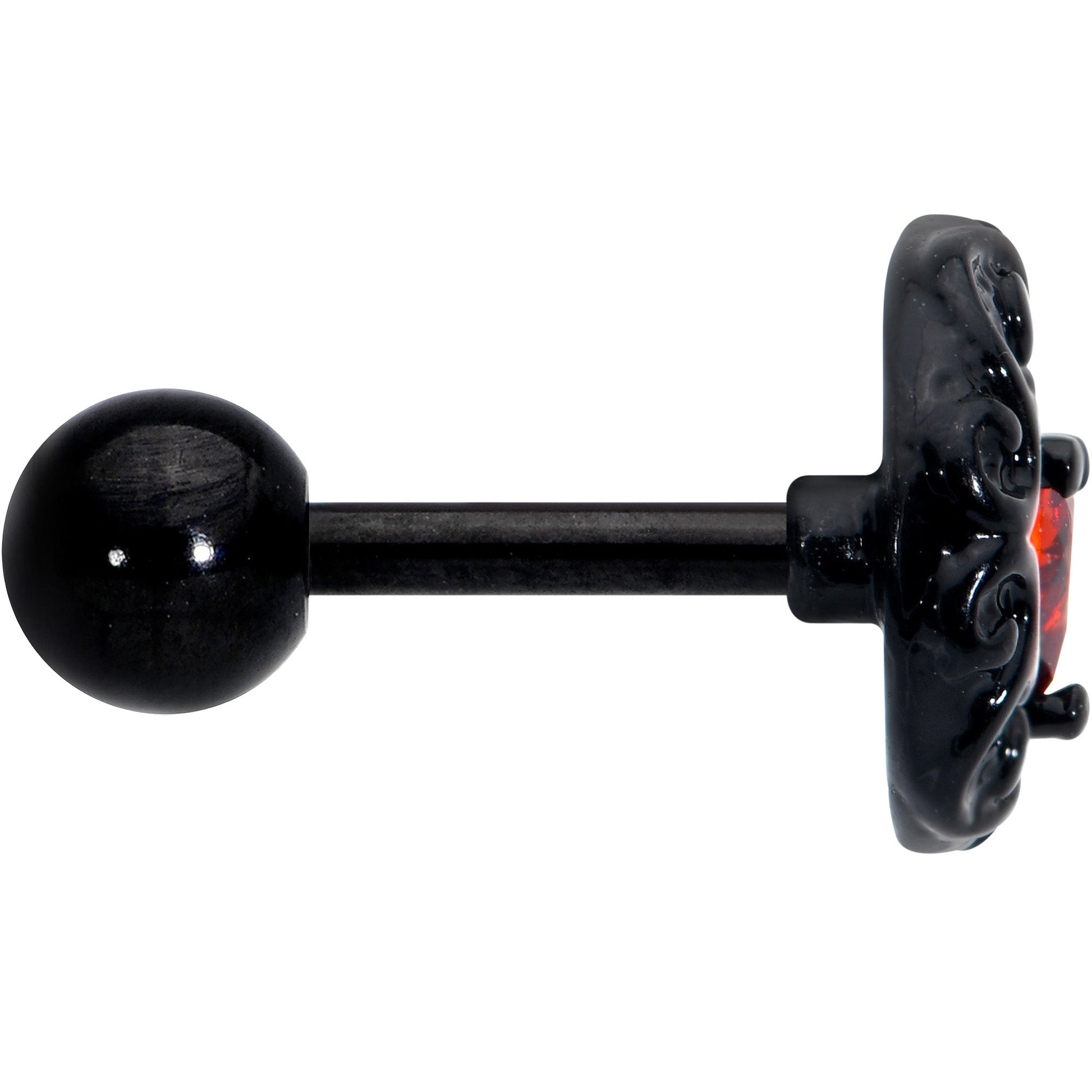 16 Gauge 1/4 Red CZ Gem Black Scroll Moon Heart Cartilage Tragus Earring