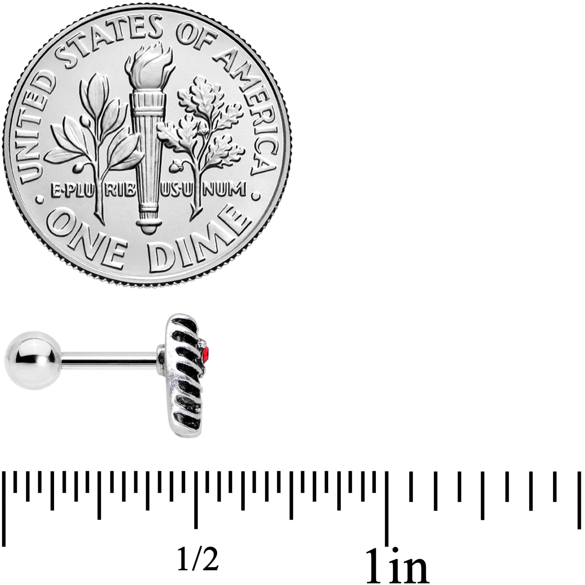 Whether you're smitten with skeletons or hungry for love, this 16 gauge cartilage stud is sure to say it all! It's made with a 6mm durable 316L surgical grade stainless steel straight barbell with a 4mm ball end. The front features a rib cage charm, with each rib carefully detailed. The rib cage is set with a red cubic zirconia gem heart, adding extra color and style. You can also wear it in multiple piercings including tragus, helix, and some conch piercings. Perfect for Halloween, this cartilage jewelry will have you loving your piercings all year round!Specifications