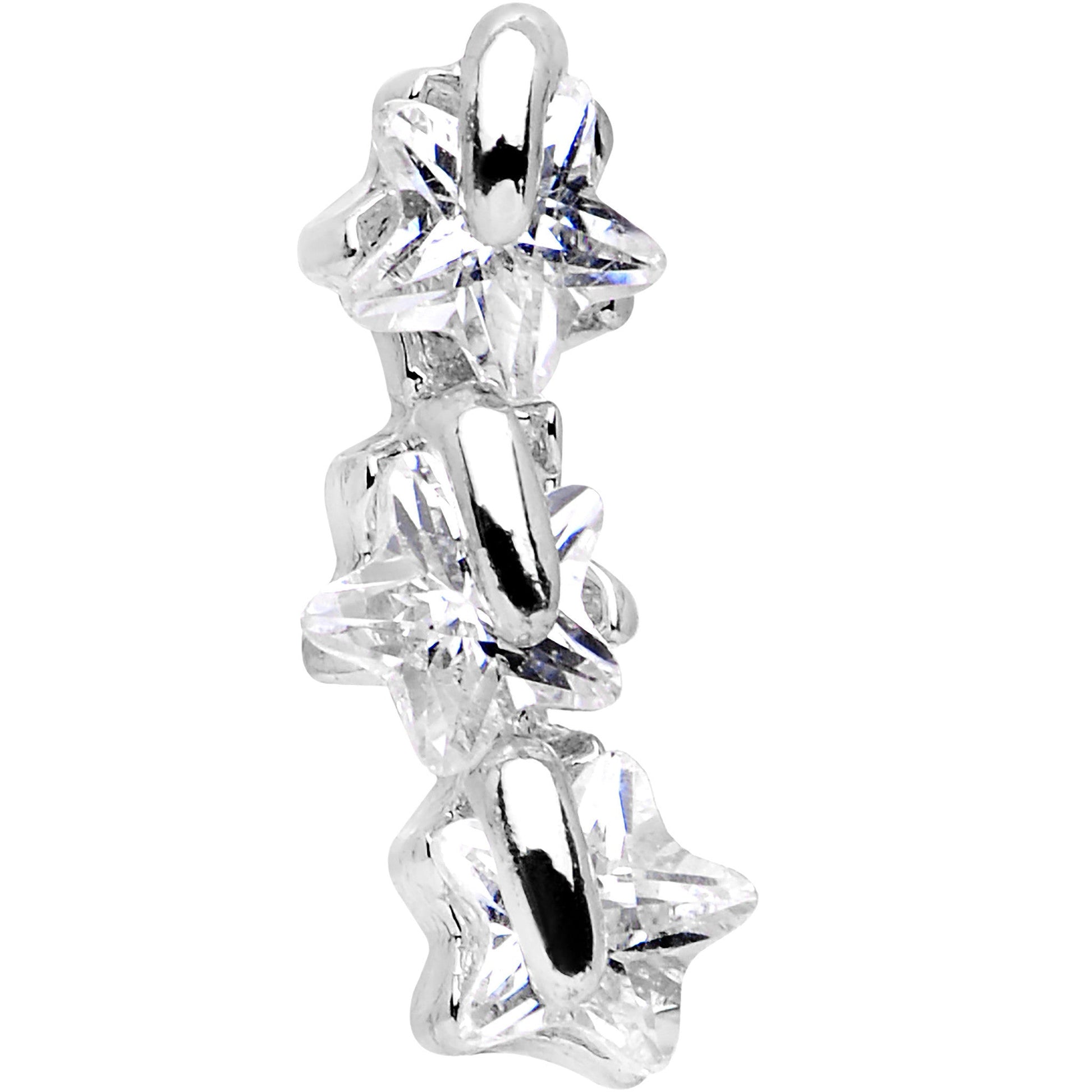 Hypoallergenic jewelry for sensitive skinWhether you are dressing your best or topping off daily ensemble this 1.2 millimeter right ear cartilage earring is right for you. Featuring a 1/4 inch length surgical grade stainless steel straight barbell and three star-shaped clear cubic zirconia gem accents, this cartilage piercing is the perfect finishing touch for any look. Sold individually; purchase two for a pair.