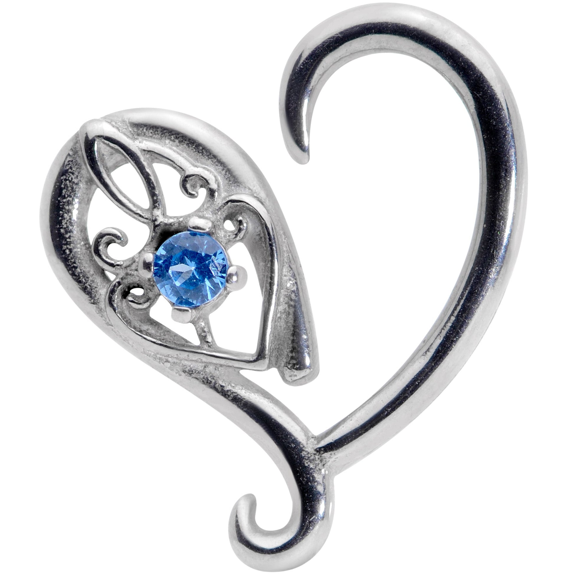 16 Gauge 3/8 Blue Gem Valentines Day Heart Right Ear Cartilage Earring