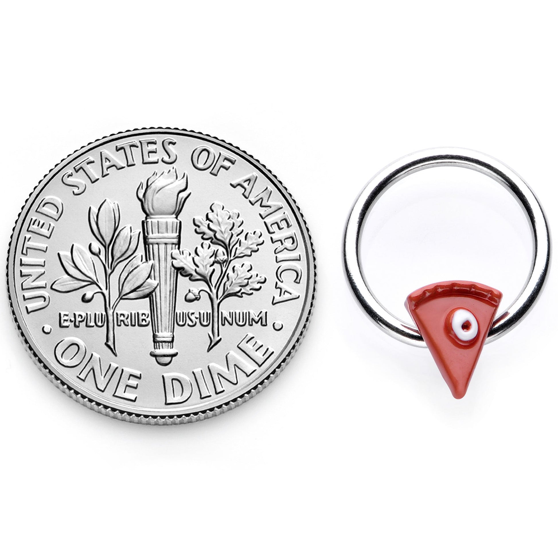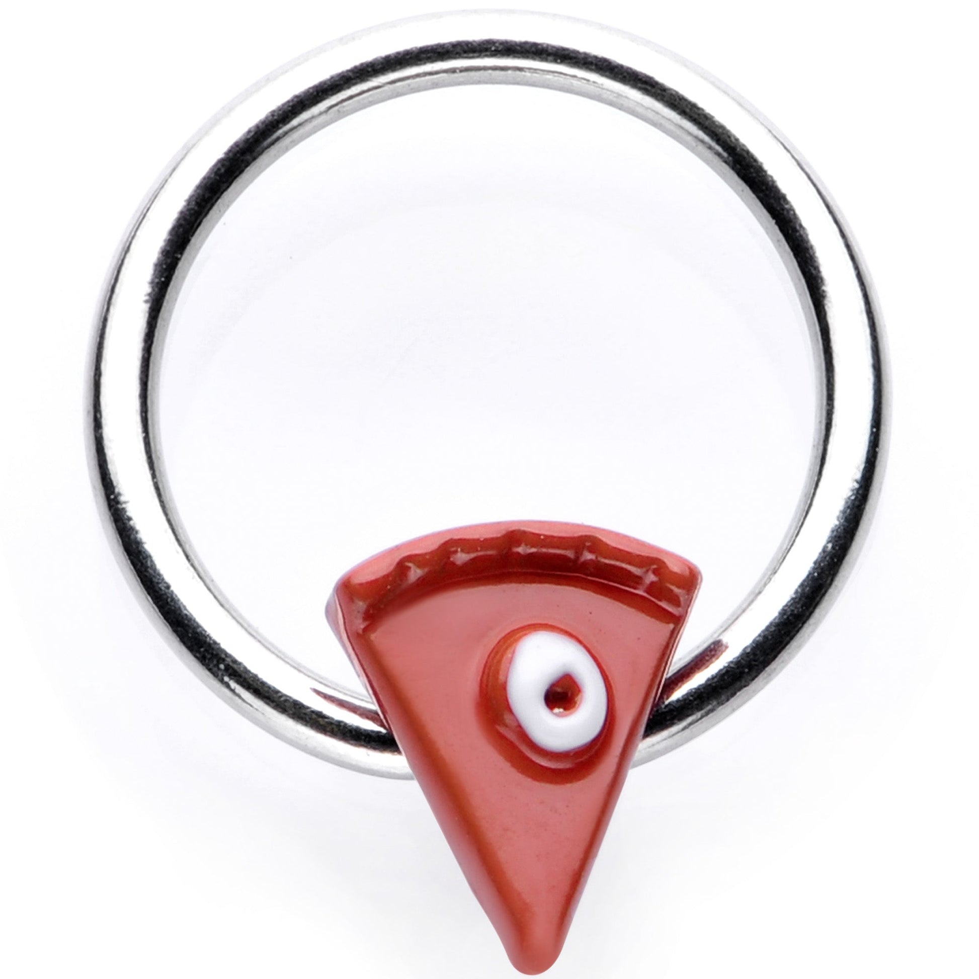 Mmmm.......what's cooking, good looking? Something delicious for the fall season when you're wearing this 16 gauge ball closure ring! It's made with a 10mm durable 316L surgical grade stainless steel circular ring. The septum ring features a delicious-looking wedge of pumpkin pie charm embellished with a swirl of white whipped cream on top. This captive earring is sure to look sweet in multiple piercings including septum piercings as well as cartilage piercings including the tragus, helix, daith and more. This autumn you can give thanks for how gorgeous you look with this tasty little treat in your cartilage piercing!Specifications