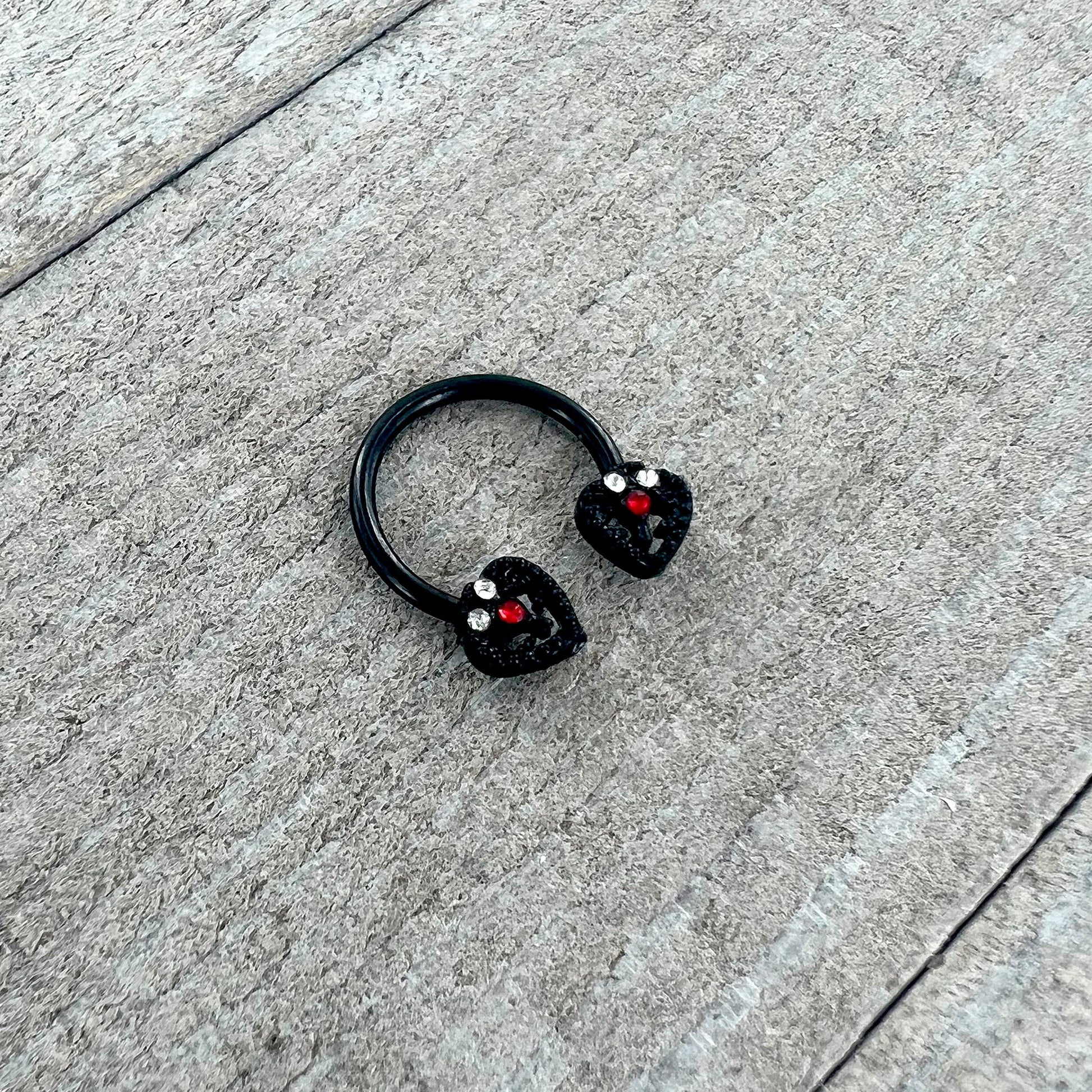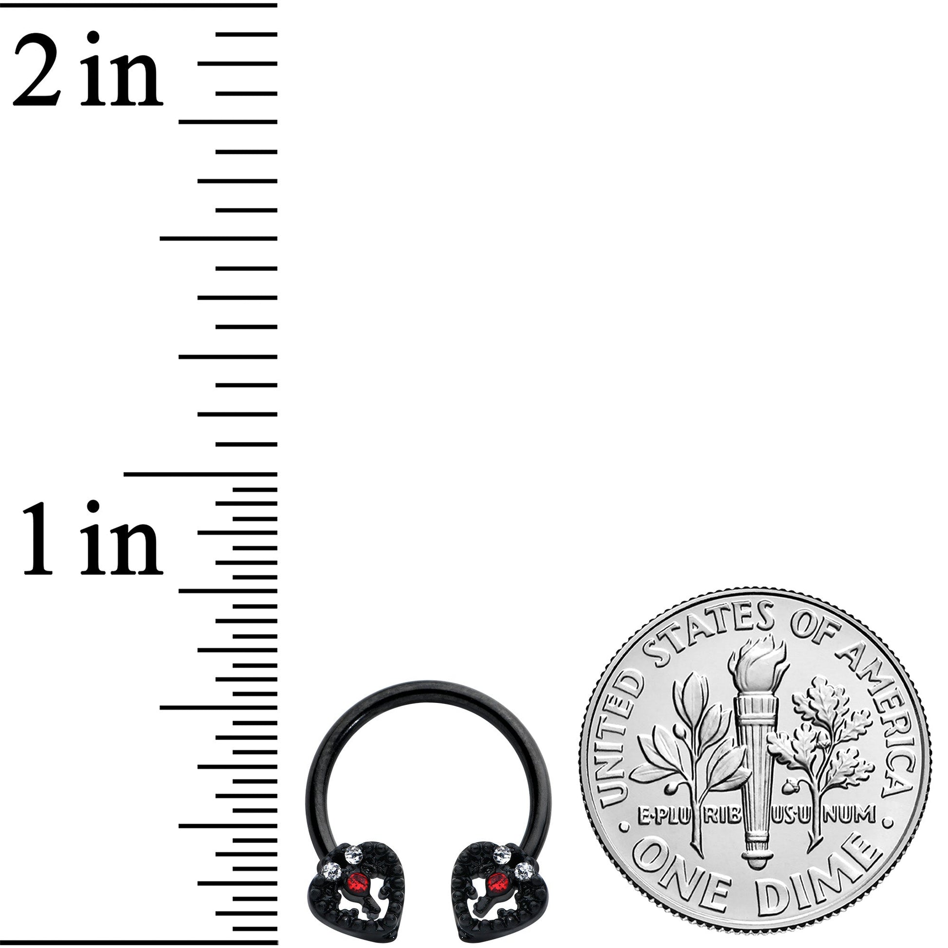 16G 3/8 Clear Red Gem Black Key Heart Horseshoe Circular Barbell
