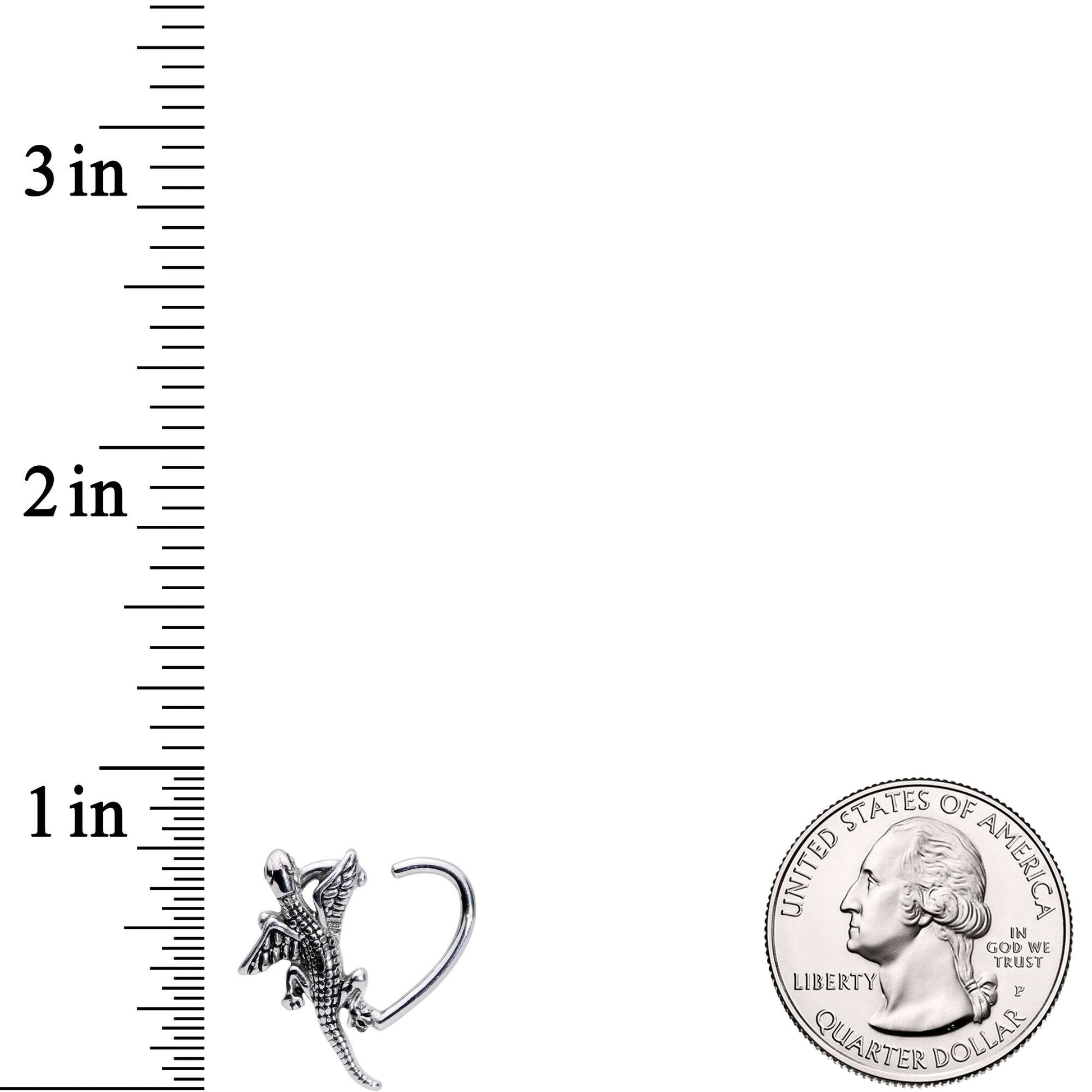 Dragons typically have scales....but this dragon has decided to scale your ear! This 16 gauge cartilage earring is made with a 10mm 316L surgical grade stainless steel closure ring, designed to be worn in the right ear. It's heart shaped and features the detailed form of a winged dragon, apparently caught in the act of climbing up the side of the heart. Closure rings are super easy to insert and remove - just give it a light twist, insert it into your piercing and gently bend it closed. You'll love that because it works so well in multiple piercings including daith, tragus, and helix. This little dragon just wants to come along for the ride with you - have a heart and give him a home in your piercing!Specifications