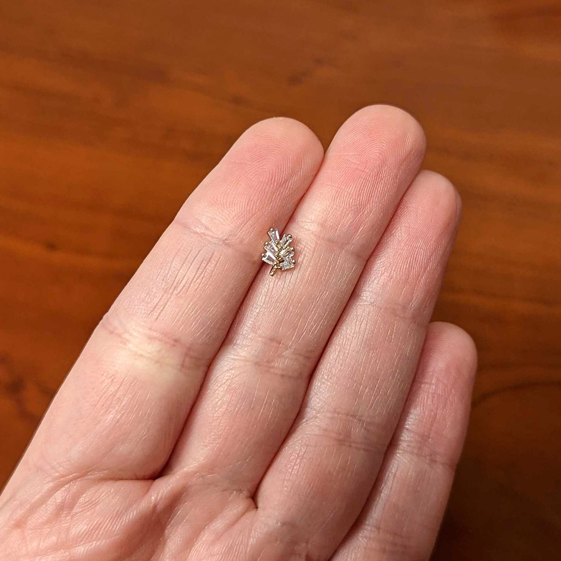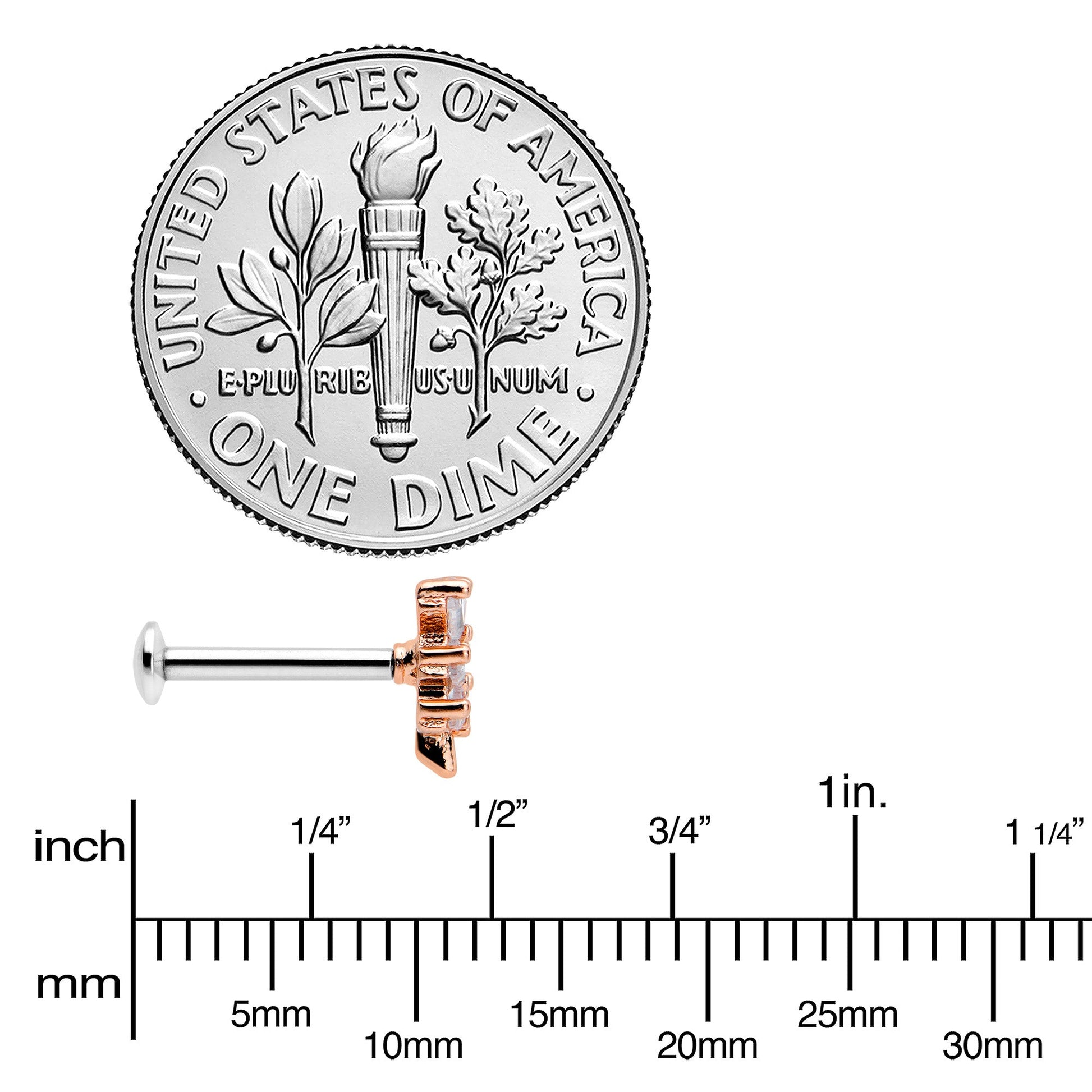 16 Gauge 5/16 Clear CZ Gem Leafy Rosy Branch Threadless Labret Tragus