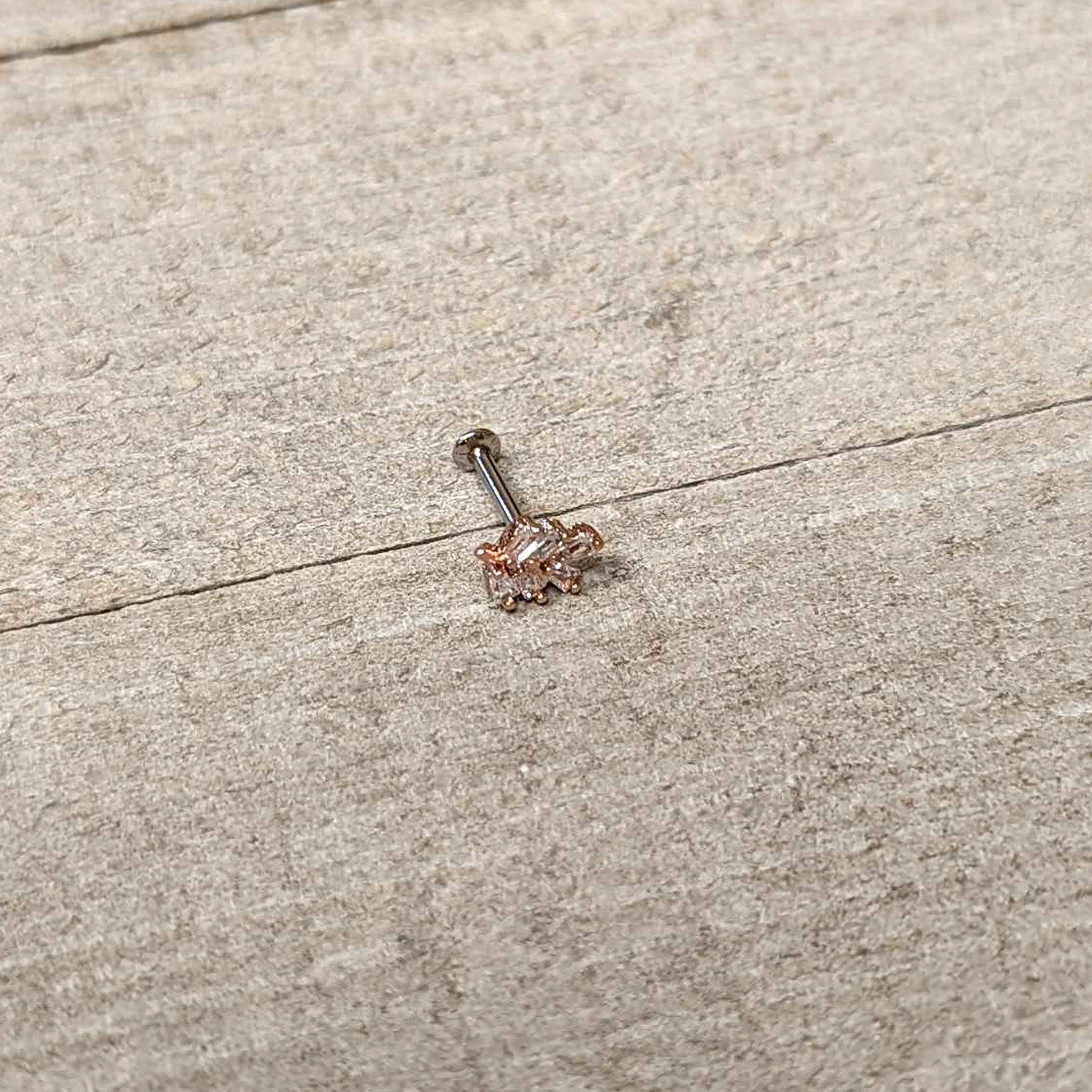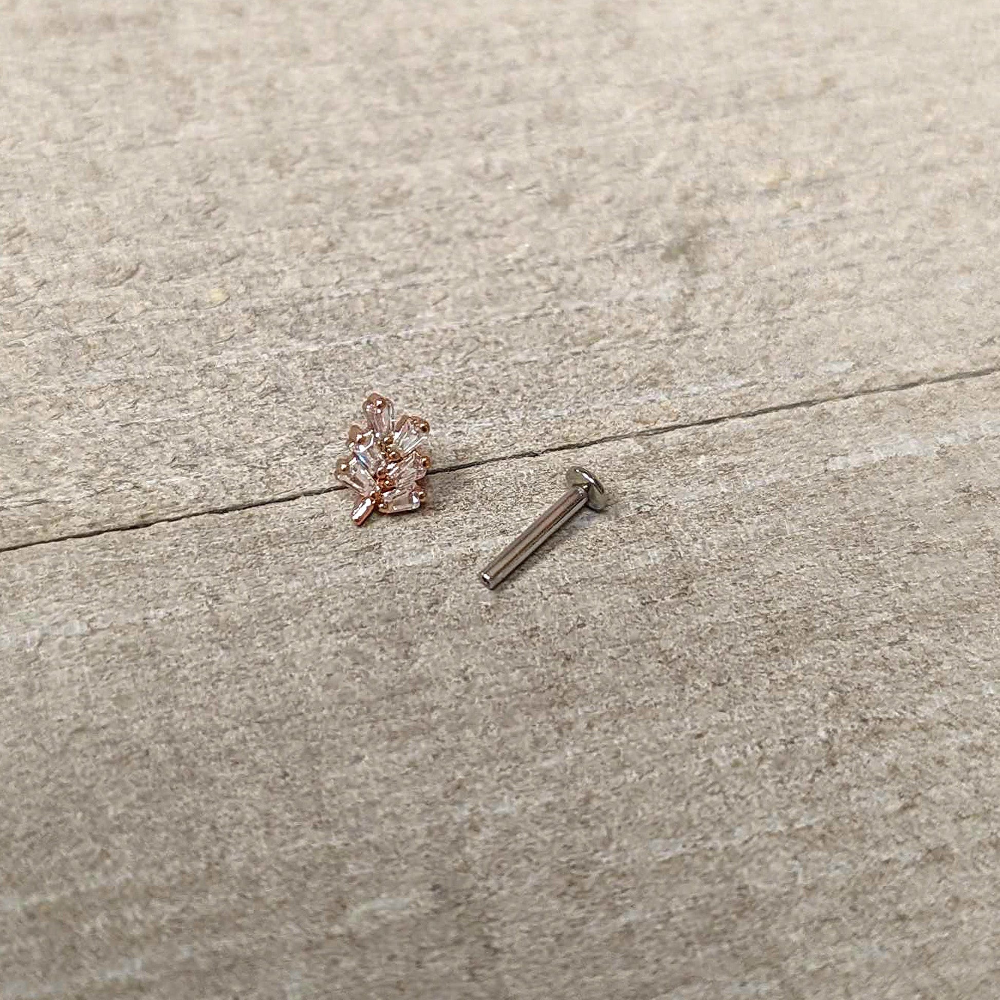 16G 5/16 Clear CZ Gem Leafy Rosy Branch Threadless Labret Tragus