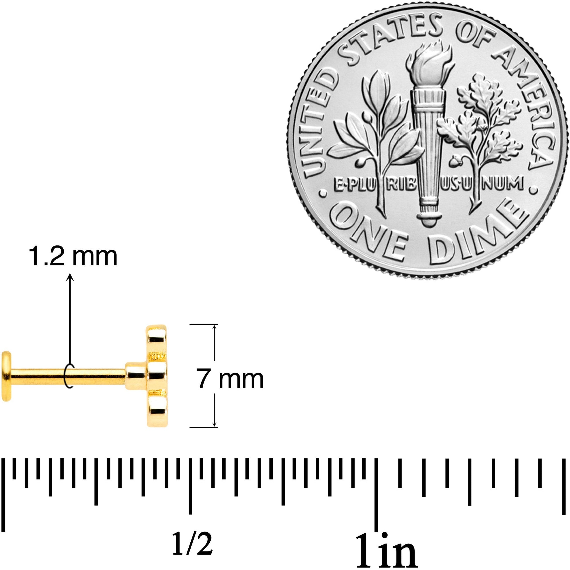 Unlock a whole new look for your piercings with this set of 16 gauge labret jewelry! They're made with 8mm gold tone PVD over 316L surgical grade stainless steel straight barbells with flat disc backs. You get one labret piercing that features a key charm set with clear gems, one featuring a heart-shaped padlock charm that's also set with clear gems. Finally, you get a third that features a simple crest of three larger clear gems set in a row. Best of all, these cartilage earrings work well in multiple piercings including the lip, labret, and monroe, and cartilage piercings like the conch, helix, tragus, and more. Grab the key to a whole new look with this set of labrets! Sold as a set of three.Specifications