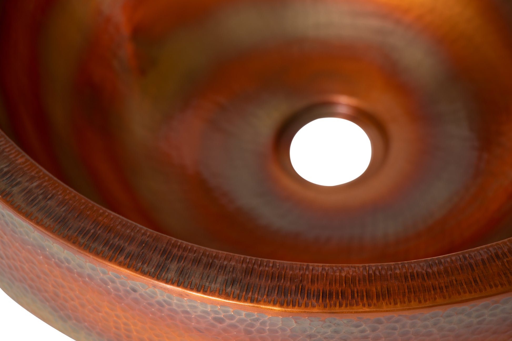 Hammered Copper Bathroom Sink with Fire Finish and Special Hammering on