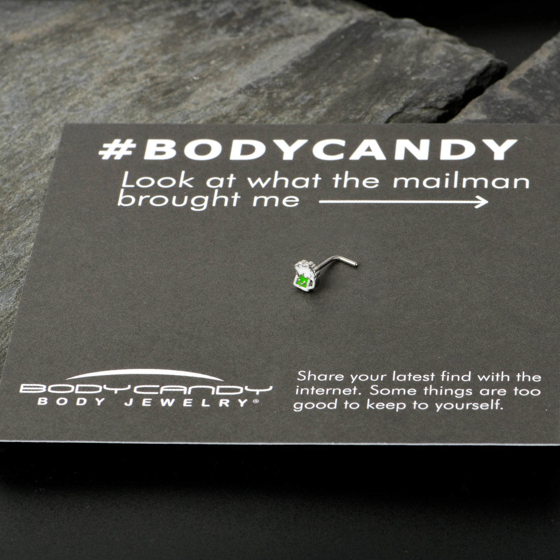 This St Patrick's Day, belly up to the bar with this 20 gauge nostril ring! It's made with a .27" length at the bend 316L surgical grade stainless steel L-shaped post. It features a green beer charm with white detailing and a happy, smiling expression. If you're looking for a bit of green to wear this St. Patrick's Day, have no fear - we've got some beer for your piercings with this festive nose piercing jewelry!Specifications