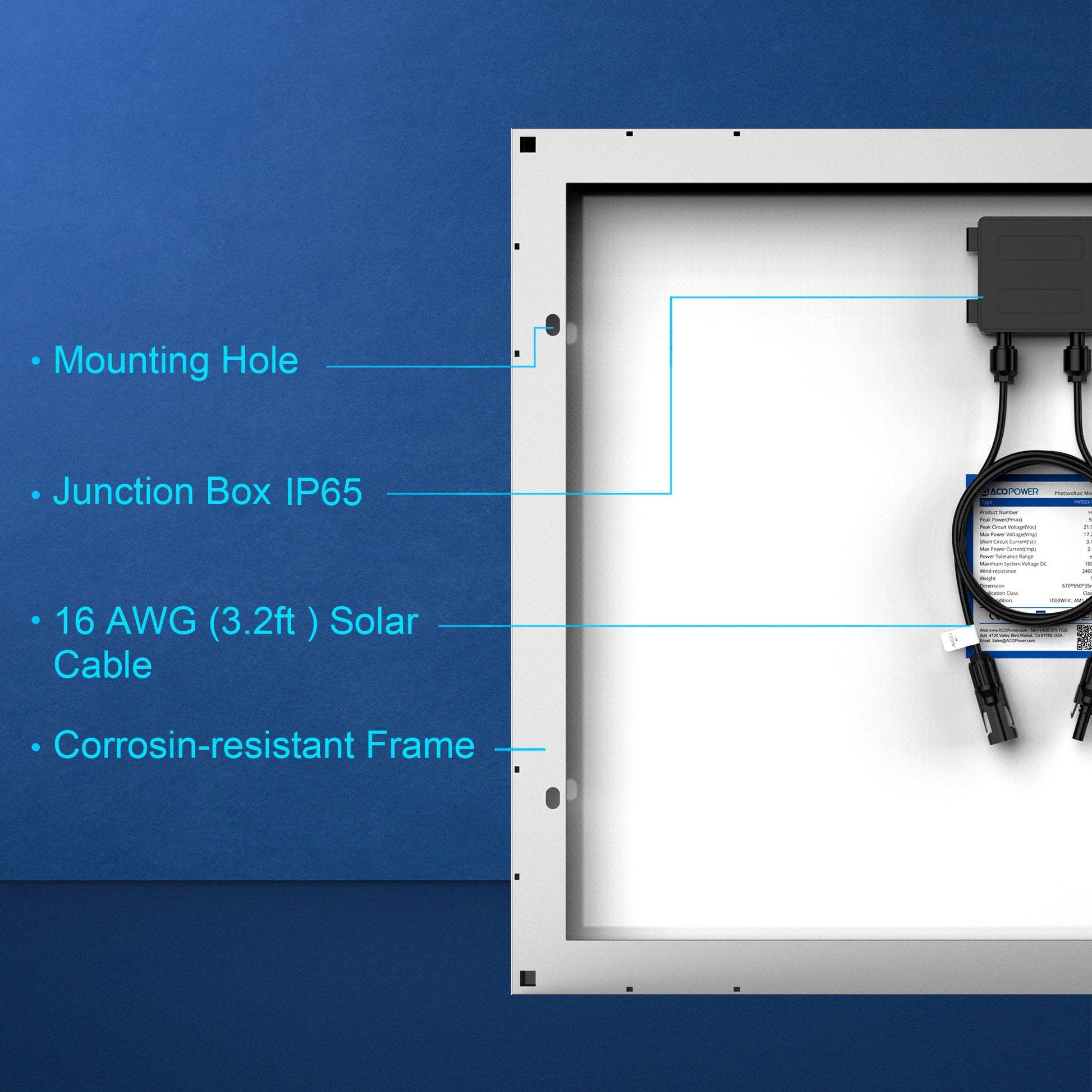 - High Efficiency – 50W monocrystalline for 12V–48V systems.