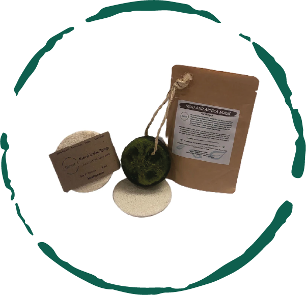 The acne prevention kit includes a mud and arnica mask, a speckless soap bar, and a natural loofah set (5-pcs).