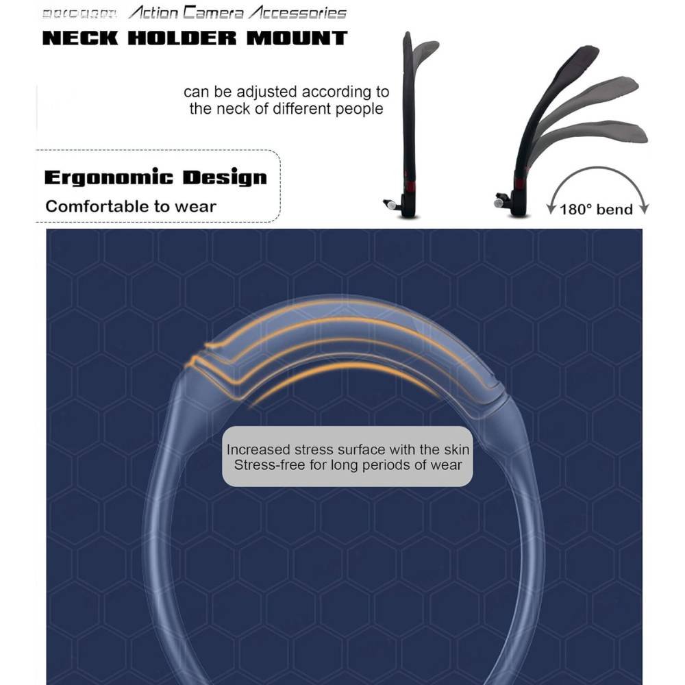- ​Practical & Comfortable: Bendable Silicone Material neck brace, highly elastic and flexible. With this sports camera neck brace, you can get first-person perspective shooting and truly present the pictures and videos you see.