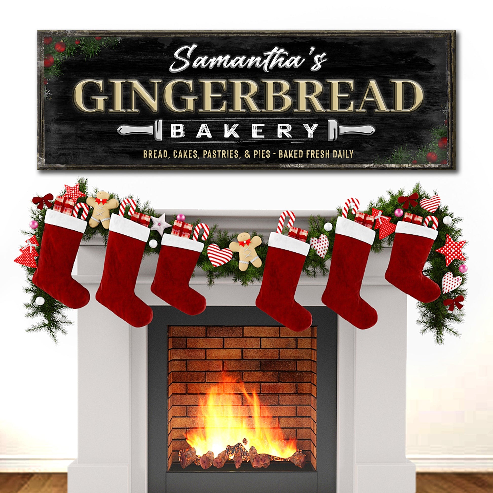 Get your customers in the holiday spirit! Warm their hearts and boost sales with this beautiful Gingerbread Bakery Christmas canvas wall art.