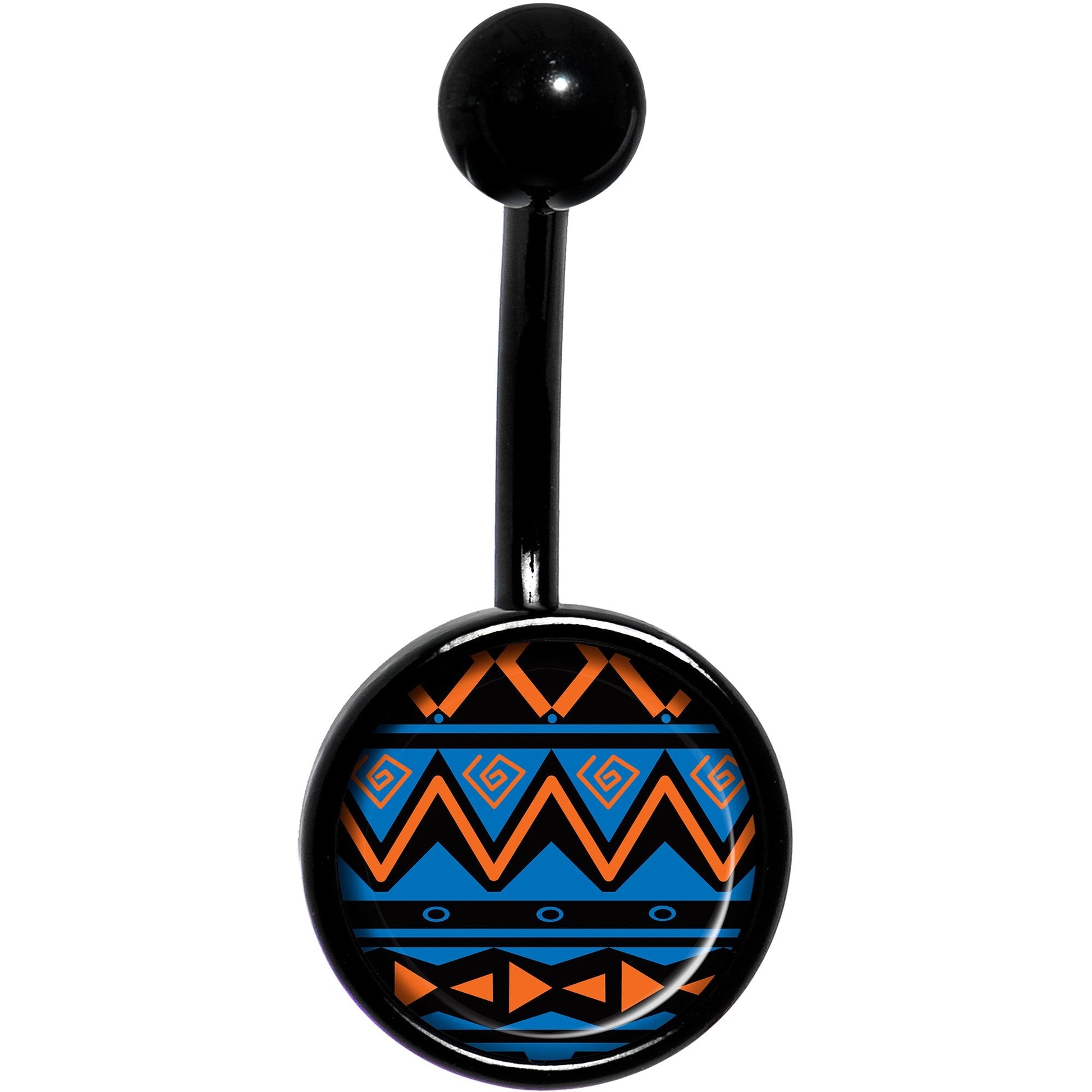 Blue Orange Tribal Print Black Belly Ring