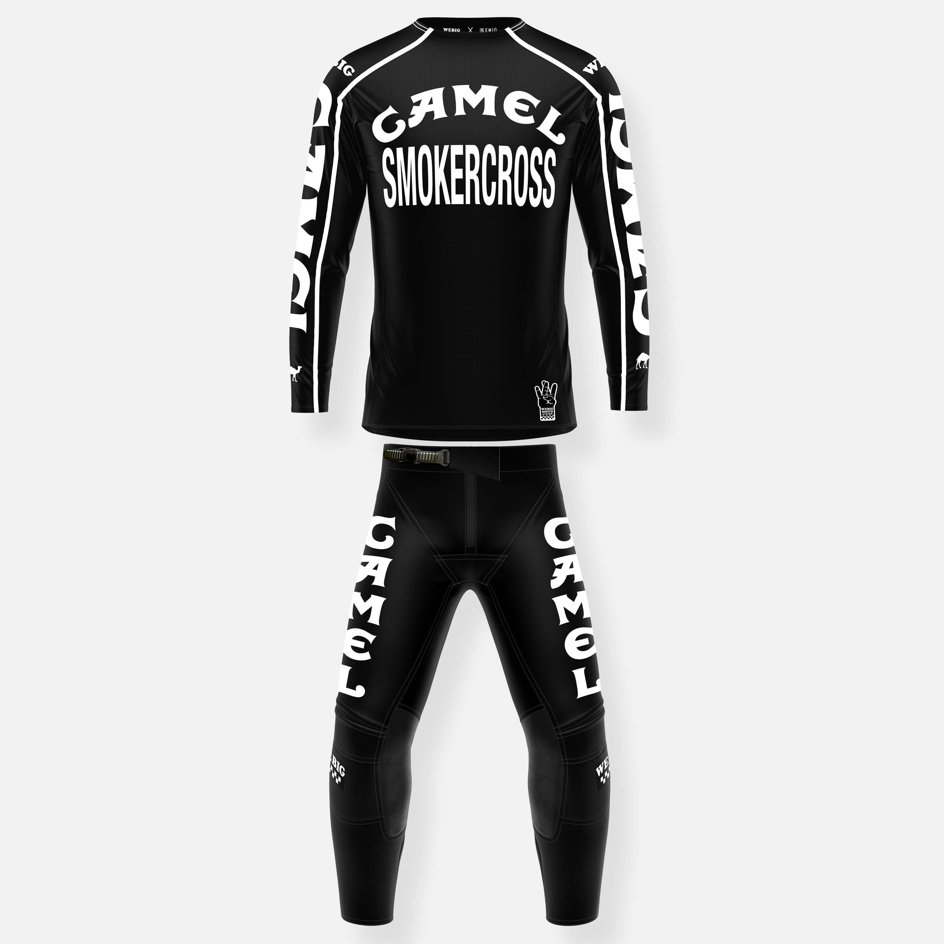Wrangle yur sexy ass smack dab into one of our new Camel Smokercross Race Pant. It was designed, and tested in direct collaboration with Jeff Emig. With hundreds of test rides and design tweaks.....we are so proud to deliver to you a Moto Pant that is at the pinnacle of greatness. If you want the full factory setup....you can run this black race pant with either the black or the yellow Camel Smokercross Race Jersey.