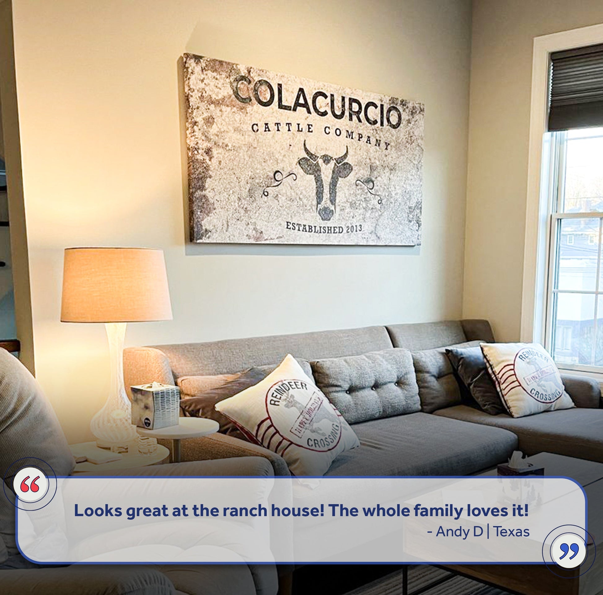 Start your cattle company off on the right hoof with a personalized cattle company sign! Our cattle canvas prints are printed on high-quality canvas, making them durable and long-lasting.