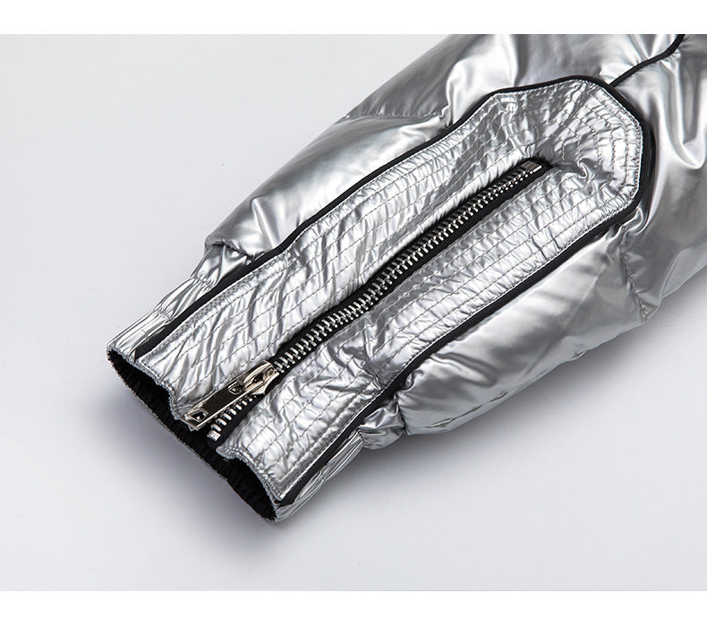 Get ready to step out in style this winter with the Couples Laser Glossy Thickened Loose Mid Length Down Jacket! It's perfect for casual outings or cozy date nights. Browse through our stunning image gallery below to see this jacket in action.