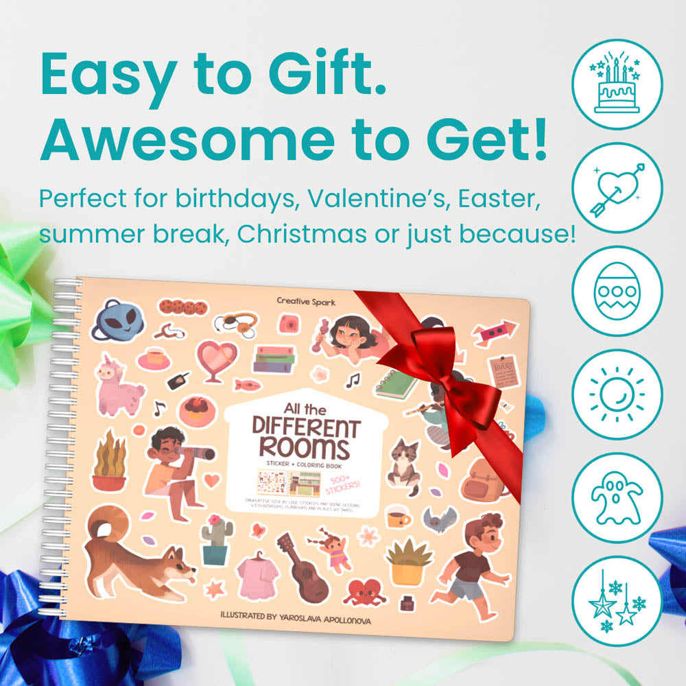 Step inside and explore a world of creativity with 500+ home-themed stickers! From cozy bedrooms and bustling kitchens to colorful playrooms and relaxing gardens, this sticker book lets you become the ultimate home designer. Mix and match furniture, decorate walls, and bring every room to life — the possibilities are endless!