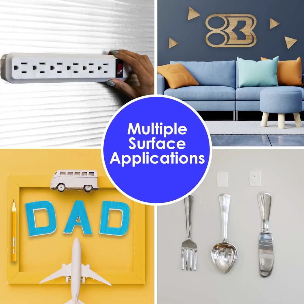 - STRONG & DURABLE. Bonds to metal, wood, glass, stone, brick, concrete, plastic, tile, and ceramic. Stick to almost anything with a smooth surface so you can stick anything anywhere.